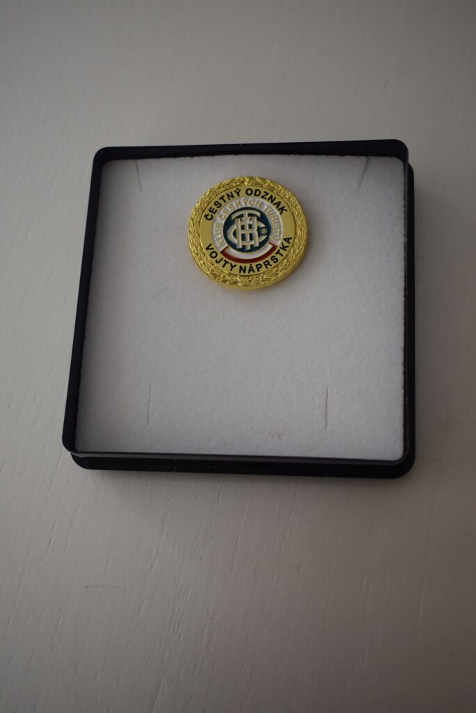 Zprava Lenka Žaková předává ocenění I. stupně Čestný odznak Vojty Náprstka -