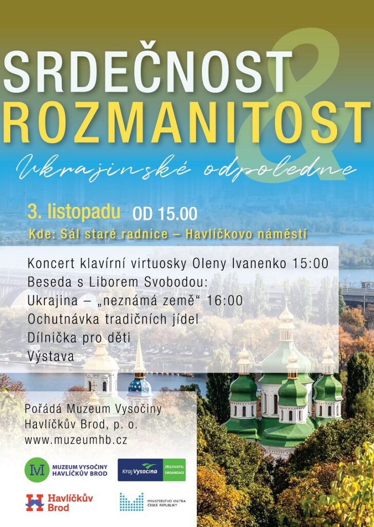 Muzeum Vysočiny Havlíčkův Brod pořádá na Staré radnici v neděli 3. listopadu od 15.00 Ukrajinské odpoledne v rámci projektu věnovaného nejpočetněji zastoupeným menšinám v České republice.