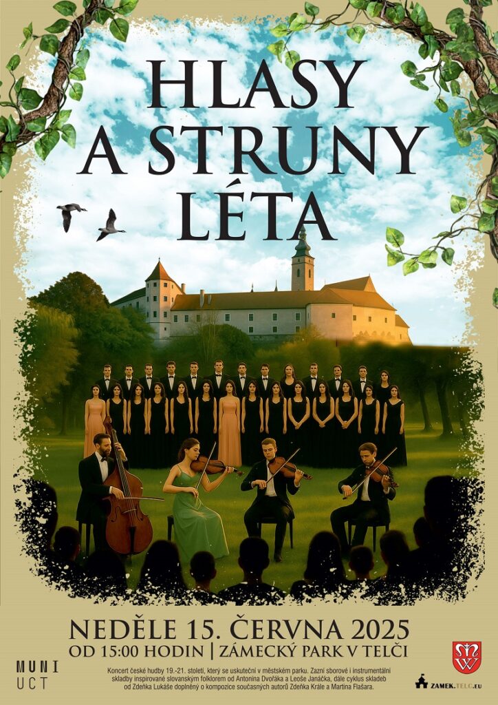 Koncert české hudby 19.-21. století se uskuteční v neděli 15. června od 15.00 v zámeckém parku v Telči. Zazní sborové i instrumentální skladby inspirované slovanským folklorem od Antonína Dvořáka a Leoše Janáčka, cyklus skladeb od Zdeňka Lukáše doplněný o kompozice současných autorů Zdeňka Krále a Martina Flašara.