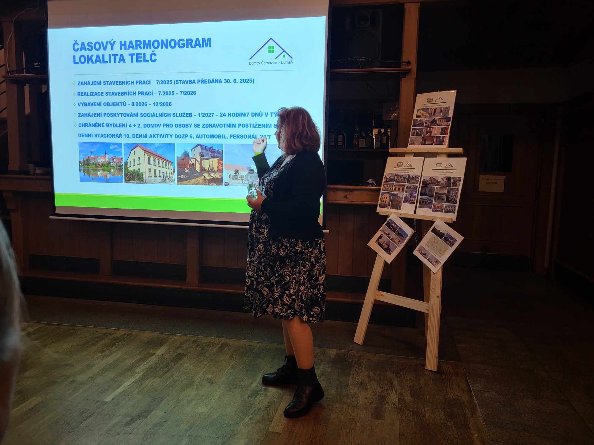V polovině listopadu se v hotelu U Hraběnky v Telči konalo setkání s veřejností, na kterém Dana Pajerová, ředitelka Domova Černovice Lidmaň, představila současný stav procesu transformace organizace, zástupce zřizovatele Kraje Vysočina, Roman Sýkora, deinstitucionalizaci v celém kraji – tzn. přeměnu velkokapacitních zařízení v komunitní bydlení s nízkým počtem osob v jedné domácnosti. Zástupci Domova Černovice-Lidmaň jednotlivé fáze přípravy lidí se zdravotním znevýhodněním na život v nové lokalitě, a současný stav stavebních prací na novém zázemí pro sociální služby, které budou v lokalitě Telč poskytovány.