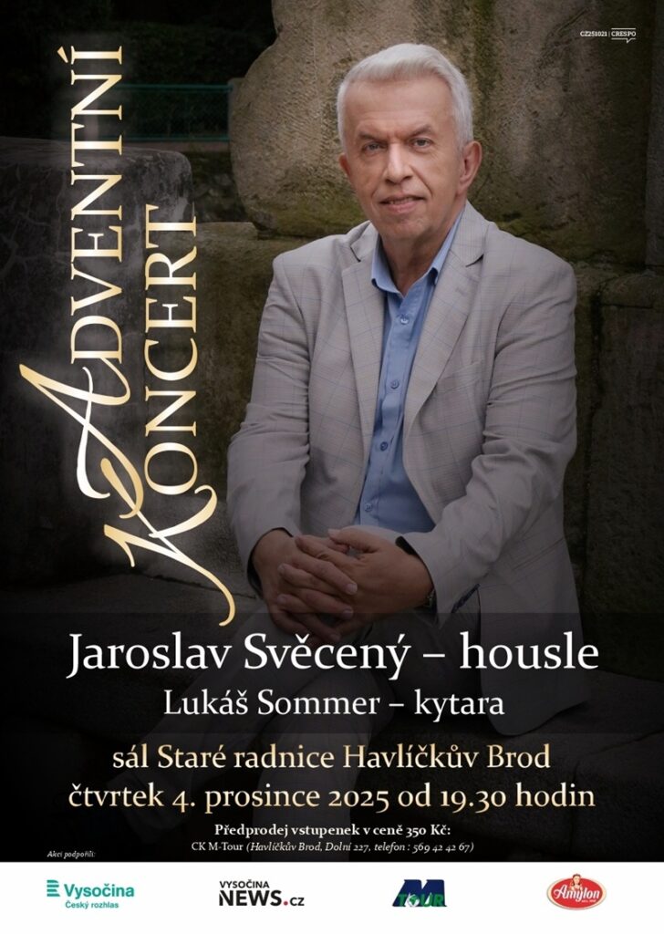Ve čtvrtek 4. prosince opět zavítá do Havlíčkova Brodu houslista Jaroslav Svěcený s novým adventním koncertem, vystoupí v sále havlíčkobrodské Staré radnice od 19.30.