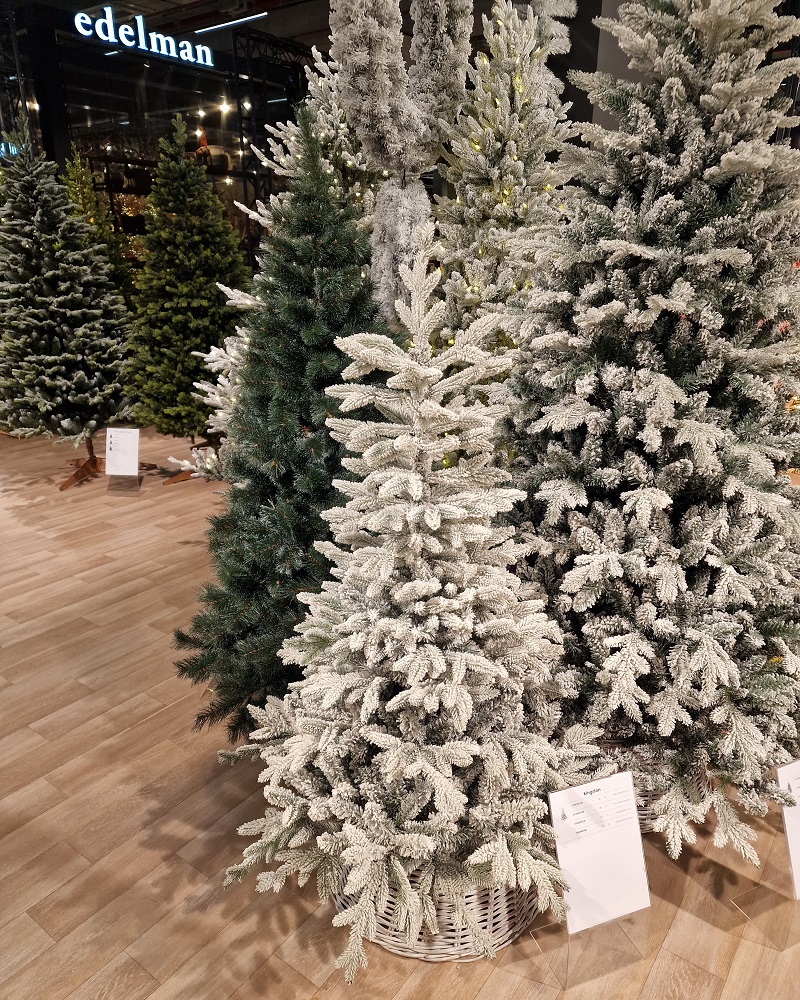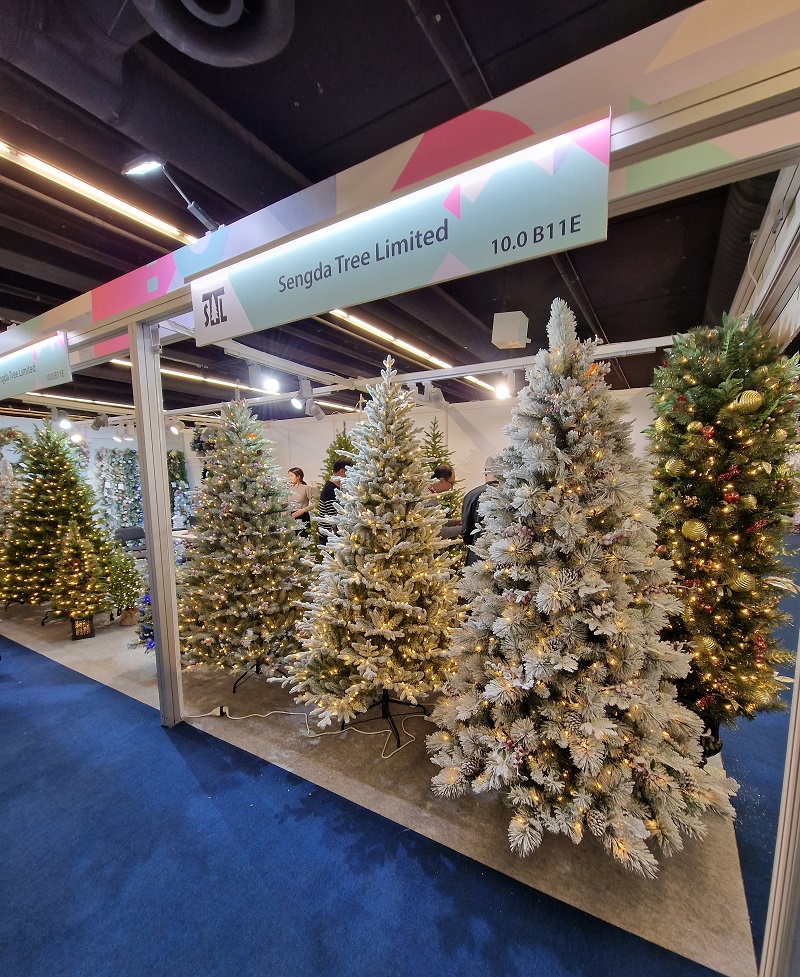 Hned v úvodu výstavy dominovaly umělé stromky, které se staly praktickou a ekologickou volbou pro domácnosti i firmy. Zvlášť populární jsou realistické 3D stromky, které imitují vzhled živých větviček do nejmenších detailů. Mezi nejžádanější velikosti patří 210cm stromky, protože tato výška je ideální pro útulnou, ale zároveň působivou sváteční výzdobu.