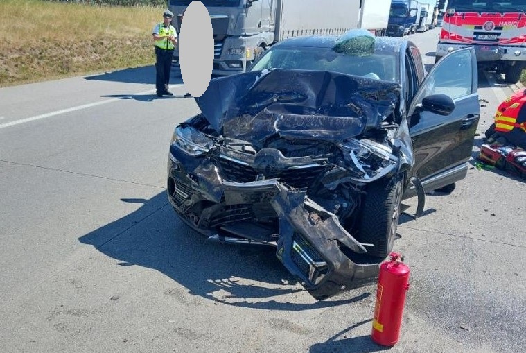„Nehoda na D1 mezi dvěma osobními vozidly si vyžádala nakonec tři zranění. Nehoda se stala na konci kolony, když řidič jednoho vozu nedobrzdil a narazil do auta stojícího před ním.