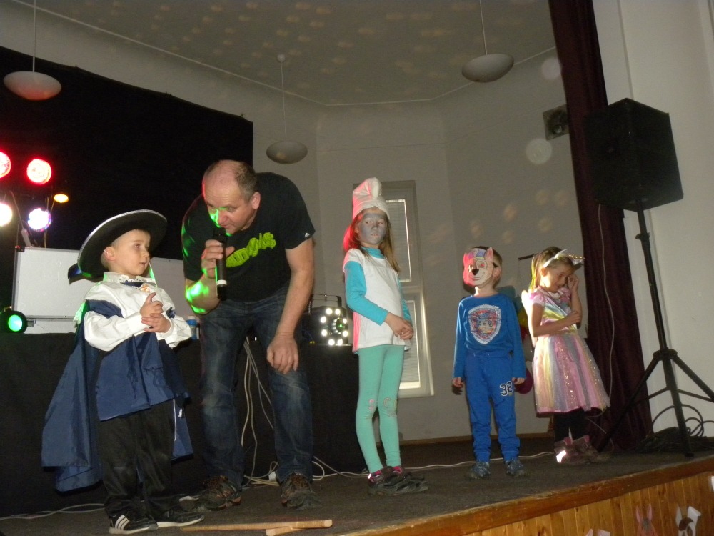 V neděli 23. února pokračovaly ráno přípravy v sále. Ženy napekly cukroví a na hosty čekaly tradiční sladké balíčky z mnoha druhů cukroví. Ve 14.00 hod. začalo dovádění dětských masek. Pět desítek dětí tancovalo a též se s chutí hlásilo do různých her a soutěží, které připravili DJ Vesy. Jako vždy dokázal do programu zapojit všechny věkové kategorie.