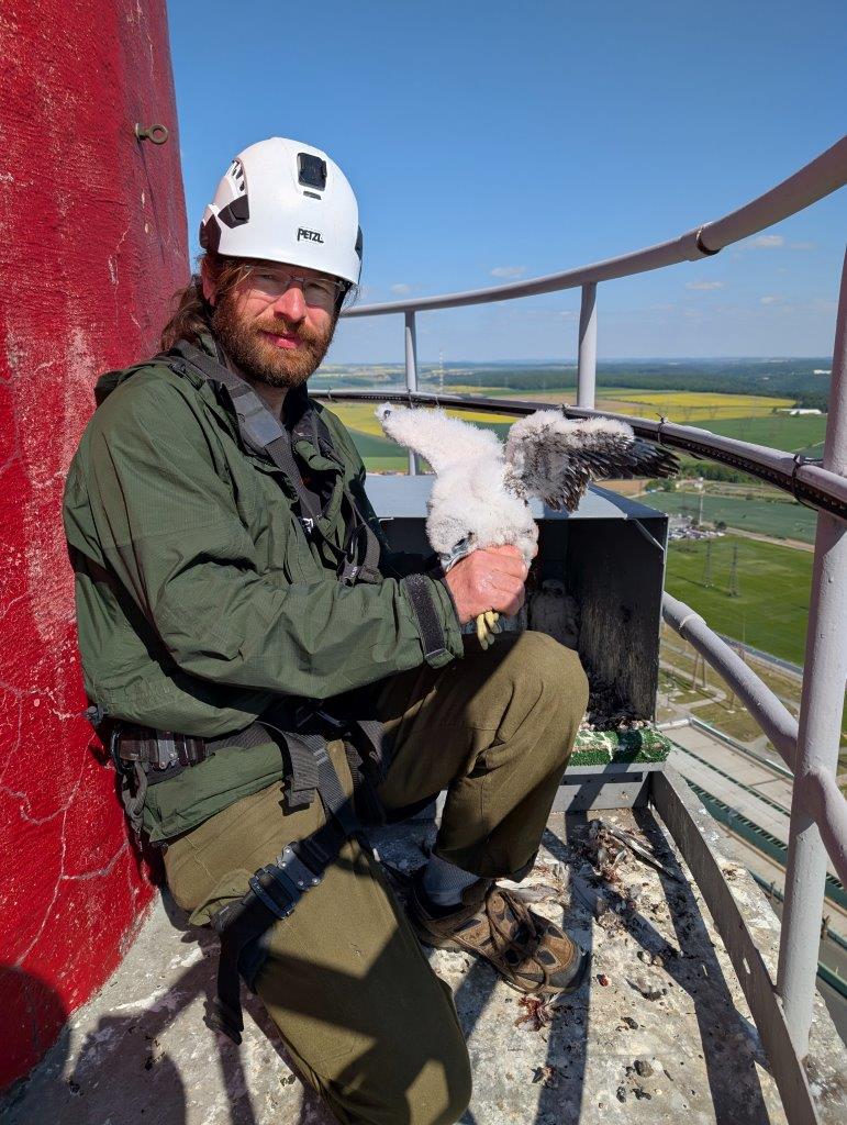 Energetici v Jaderné elektrárně Dukovany s radostí oznamují další úspěch v ochraně ohroženého druhu sokola stěhovavého. V letošním roce se ke 40. výročí provozu Jaderné elektrárny Dukovany sokolímu páru podařilo vysedět tři zdravá mláďata, která byla nedávno zkontrolována a okroužkována. Mláďata, jejichž stáří ornitolog odhadl na dva týdny, jsou zdravá, plná síly a energie.