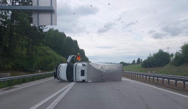 Před půl šestou se stala na 89. kilometru dálnice D1 ve směru na Brno další havárie. „Dodávka, zřejmě po defektu na pneumatice, je převrácená na boku přes všechny jízdní pruhy, provoz ve směru na Brno je zastaven. Na místo míří všechny složky Integrovaného záchranného systému Kraje Vysočina. Zranění hlášeno nemáme, dálnice je stále uzavřena, na místo míří odtahová služba, bude k místu najíždět z protisměru,“ dodala Dana Čírtková.