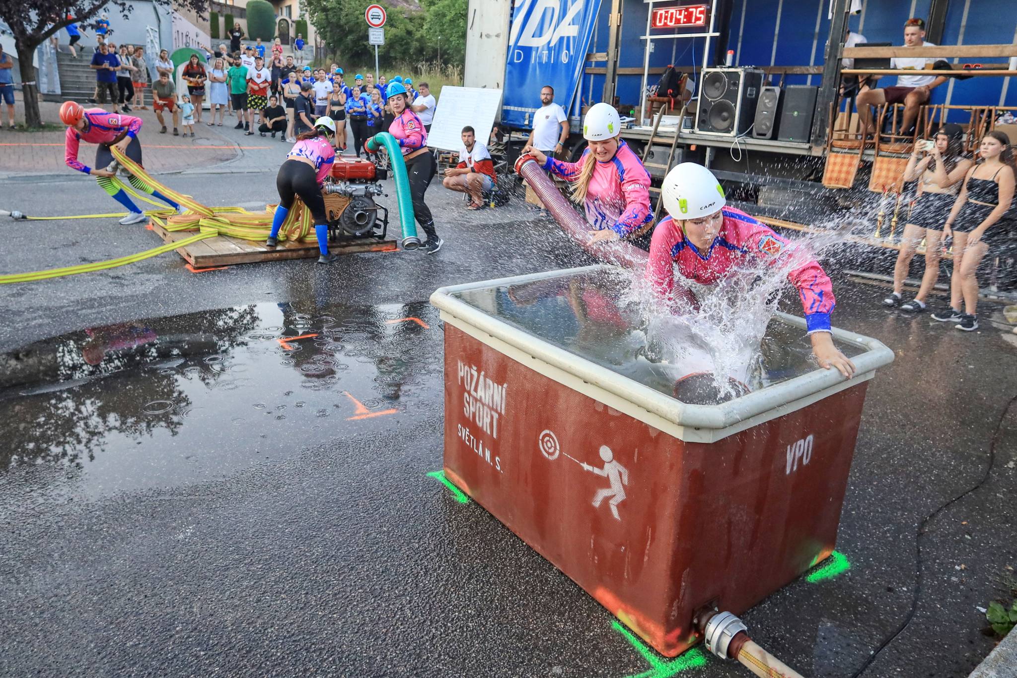 Prezence mužů a žen je od 19.00 a ve 20.00 bude zahájena soutěž dospělých kategorií. První startující je kategorie žen na 2B, poté následují muži na 3B. Trať je asfaltová, proto je nutné zvolit správnou obuv, terče jsou připraveny sklopky a hadice jsou povoleny sportovní B65 a C42. Soutěž se řídí pravidly RHBL a je povoleno půjčení dvou členů z jiného družstva.
