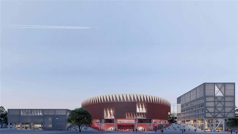 Dynamická fasáda arény reaguje na dění uvnitř budovy. Tento přístup z ní činí vizuálně i funkčně propojenou součást městského prostoru. Nejde jen o sportovní stánek, ale o aktivní místo pro setkávání, které mění svůj výraz podle toho, co se uvnitř děje.