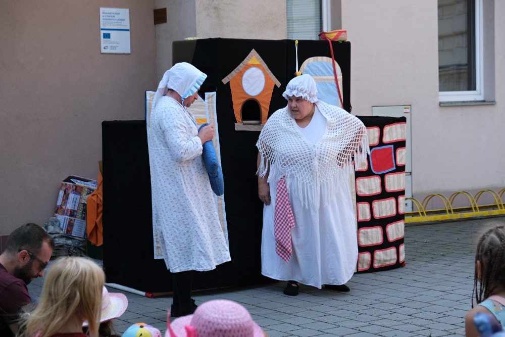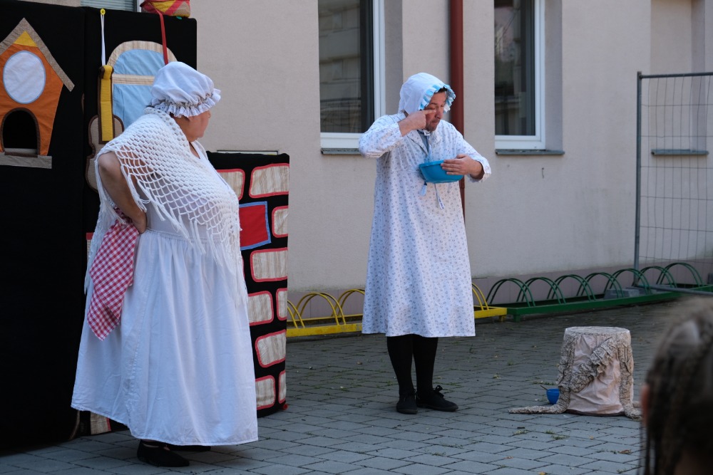 Pro děti bylo ve 14.00 připraveno divadelní představení. Na prostranství u školy zahrálo divadlo Kapsa z Andělské Hory pohádku O Budulínkovi. Klasický příběh, pojatý jako hudební činohra, dostal v jejich podání nový rozměr.