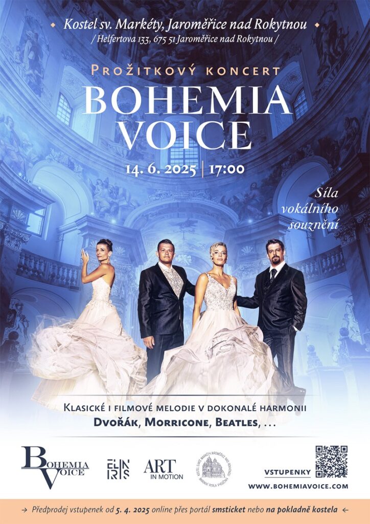 Koncert Bohemia Voice se uskuteční v sobotu 14. června v 17.00 v barokních prostorách kostela sv. Markéty v Jaroměřicích nad Rokytnou. Akci pořádá jaroměřická farnost.
