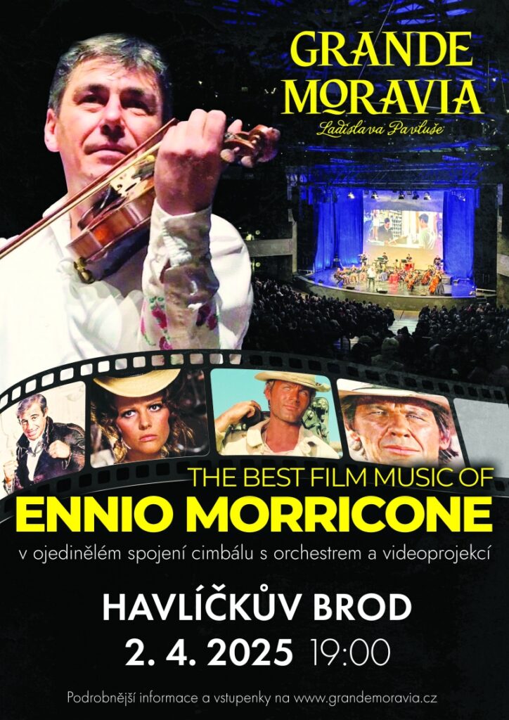 Kulturní dům Ostrov Havlíčkův Brod ve středu 2. dubna od 19.00 se stane svědkem ojedinělého spojení cimbálu s orchestrem a videoprojekcí. Grande Moravia zahraje slavné melodie italského skladatele Ennia Morriconeho.