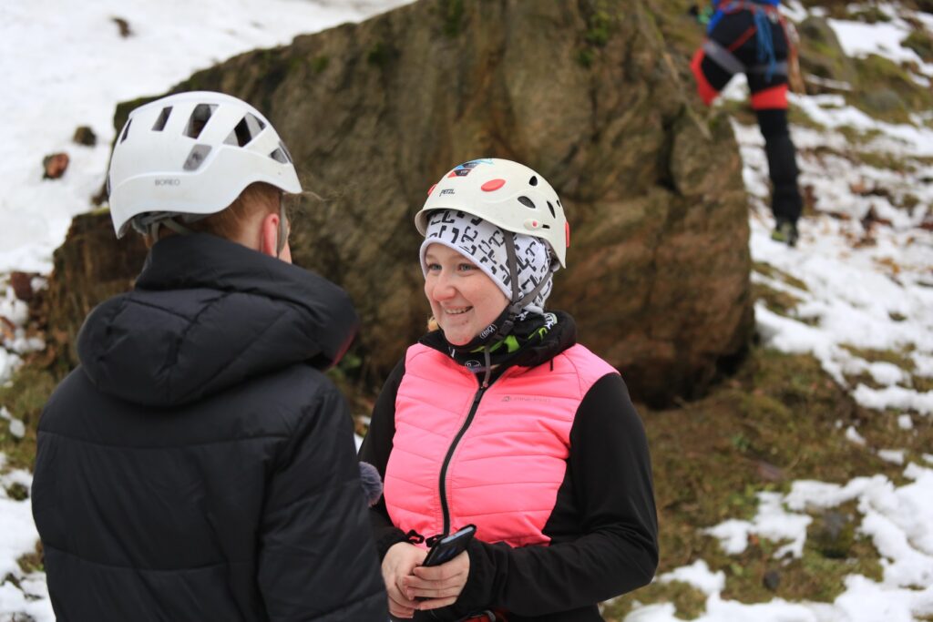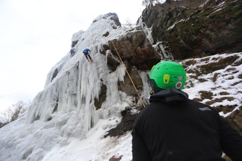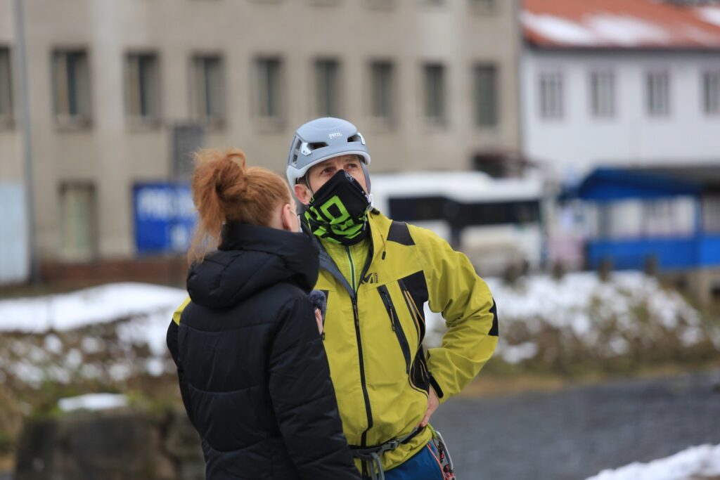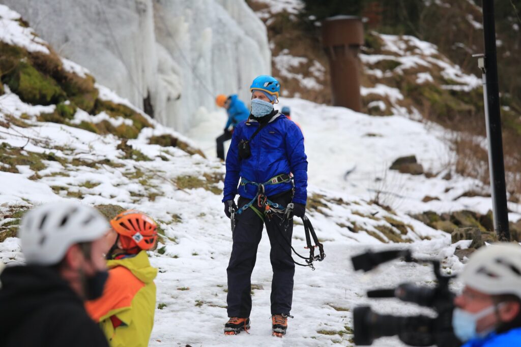 Všichni sportující musí mít po celou dobu ústa zakrytá respirátorem, rouškou, šátkem,…. Samotní provozovatelé pak upozorňují, že díky těmto pravidlům je doporučeno lezení zkušenějším ledolezcům, kteří jsou zcela soběstační vědomostmi, znalostmi i materiálním vybavením a dokáží bezpečně lézt ve dvojici lanového družstva bez cizí kontroly a pomoci. Ani přísná pravidla a znatelná obleva zájemce o lezení neodradila a všichni kteří měli na ráno zamluvené místo dorazili. Mezi návštěvníky jsou jak místní, tak hodně lezců z Brna a dokonce nechybí ani lezci ze Slovenska. „Letošní příprava ledové stěny bylo docela rodeo a bylo to jedno z nejnáročnějších namrazování. Pravidelně se musel kontrolovat teploměr a podle toho zapínat vodu. Bohužel ale počasí se přes noc rychle změnilo, a tak máme dneska připravených pouze sedm tras. Byla doba kdy jich bylo i čtrnáct,“ popisuje přípravu a zahájení provozu Slávek Matuška předseda horolezeckého spolku Ledová stěna Vír. Mezi pravidelné návštěvníky ledové stěny patří také místní lezkyně Natálie Šudomová. „Poprvé jsem si lezení na ledové stěně vyzkoušela v roce 2015, ale tenkrát mě tento sport moc nenadchl. Až v roce 2017 jsem to zkusila znovu a od té doby se tomu věnuji naplno i závodně,“ vzpomíná Natálka na své začátky. Tato závodnice nechybí ani při závodech o Vírský cepín kde se jí také daří. „Mezi mé největší úspěchy patří moje třetí místo tři roky po sobě na mistrovství ČR v ledolezení na rychlost, kdy nejlepší čas byl z posledních závodů v kvalifikaci a to 00:23:45. Největším úspěchem jsou ale také všechny posuny a každoroční zlepšování,“ popisuje Natálie Šudomová svou závodní kariéru. Ač bylo dnes na stěně plno, přesto si ale tato závodnice našla čas a kvalitu ledu vyzkoušela na vlastní kůži. „Dopoledne jsem spíš pomáhala kamarádům, kteří chtěli stěnu vyzkoušet. Vylezla jsem si s nimi pouze dvě cesty. A na těchto cestách ten led nebyl tak hrozný. Odpoledne jsem dokonce potrénovala se svým trenérem Slávkem Matuškou i rychlostní lezení. Takže dnešní lezení bych zhodnotila kladně.“