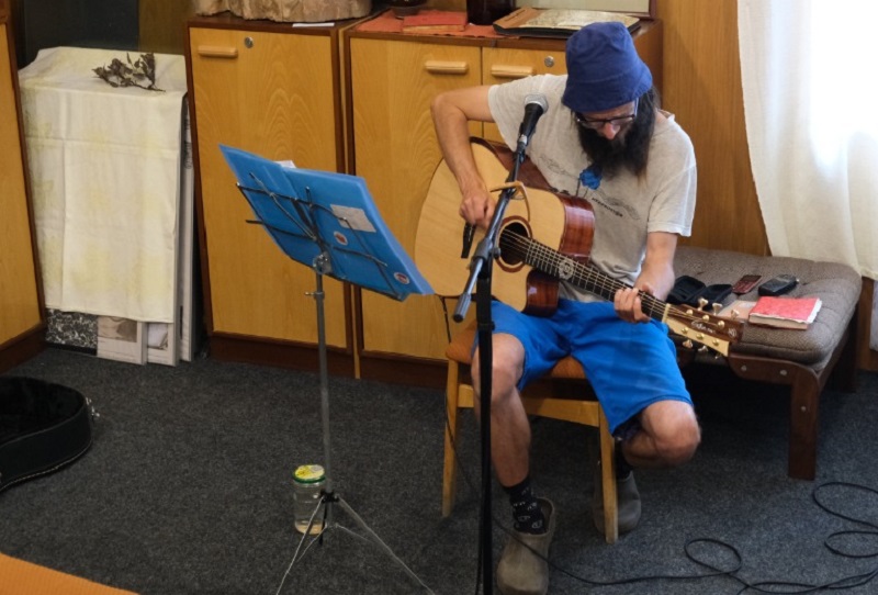 Zájemci měli možnost si poslechnout akustickou kytaru a zpěv v rámci poetického posezení. K zakoupení byli cédéčka s písněmi Fanyho a k nahlédnutí zbývající hudební srpnové akce skupiny, s kterou Fany obvykle vystupuje.