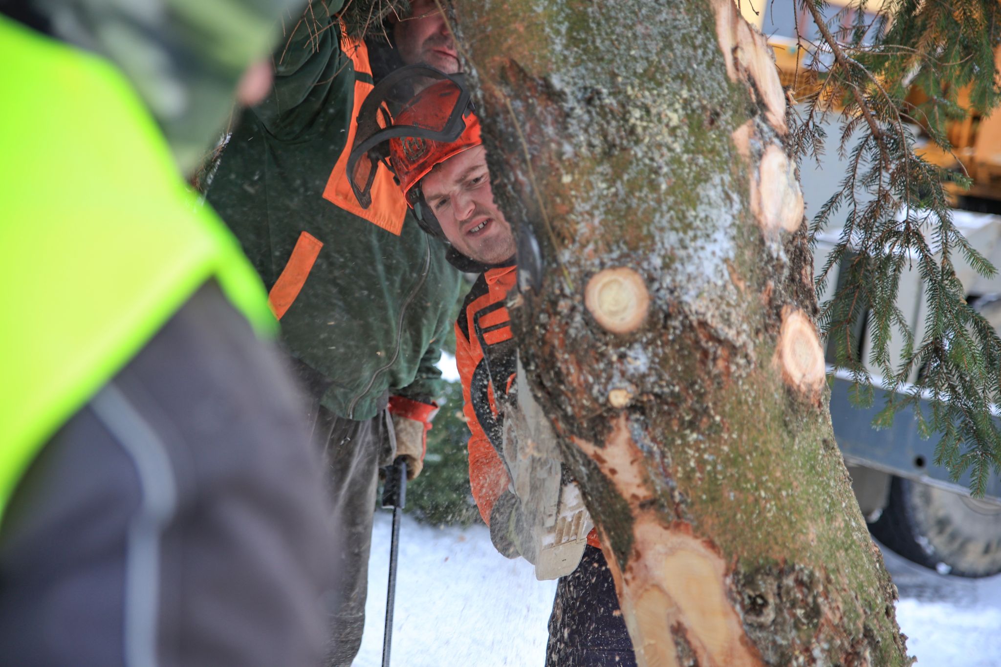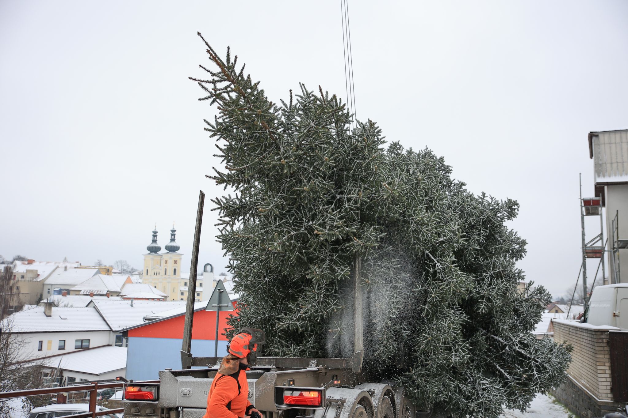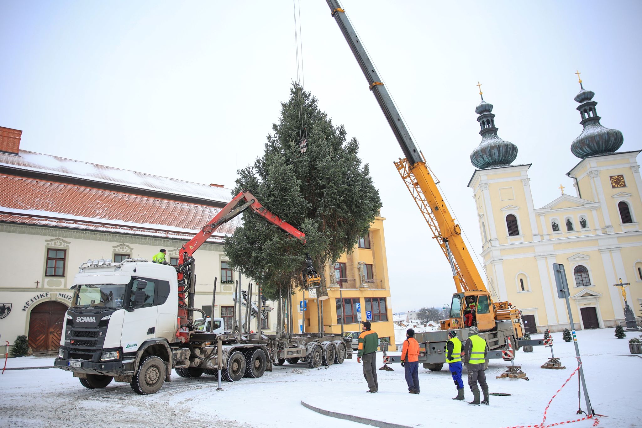 Těžkou techniku tedy nečekala dlouhá cesta a strom byl za patnáct minut na náměstí, kde ho s pomocí jeřábu umístili na místo. Během týdne ho pracovníci technických služeb nazdobí a v sobotu ho slavnostně rozsvítí.