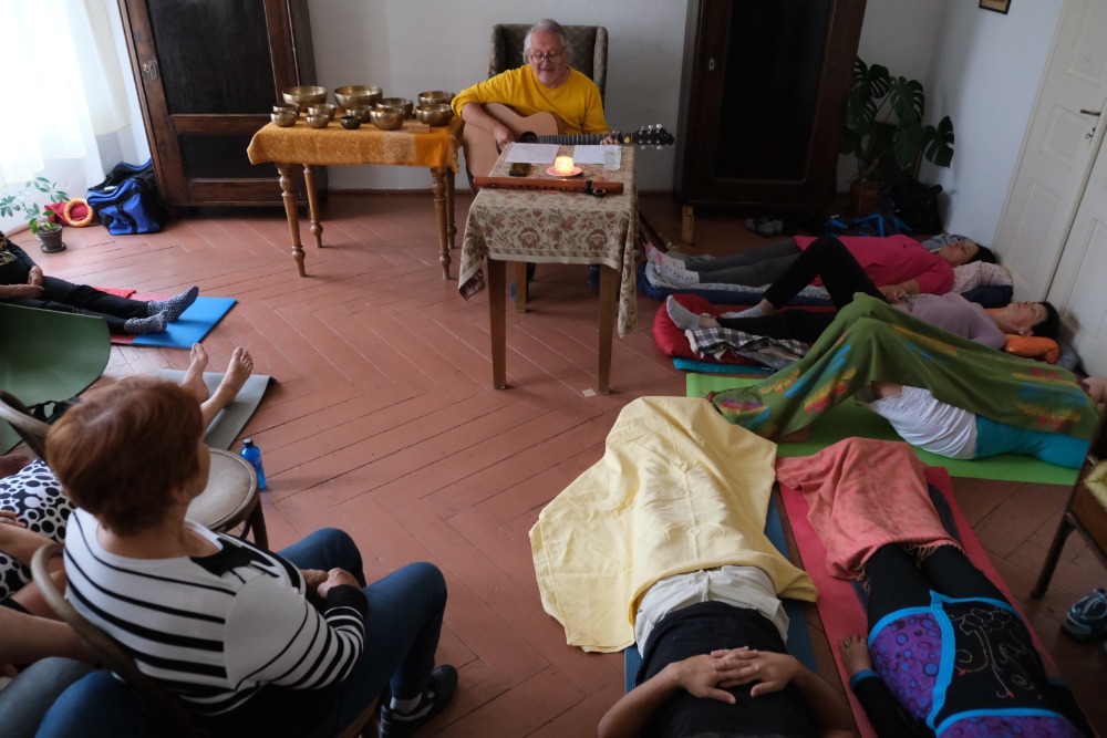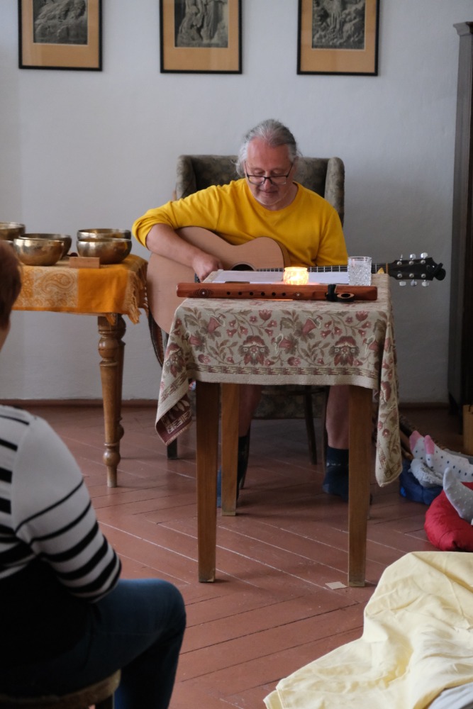 Hrál a zpíval jsem asi hodinu a řekl bych, že přesně toto se většině přítomných podařilo uskutečnit. Tedy se zastavit v sobě ve světle vědomí sebe sama a nenechat se rušit ničím vnějším.