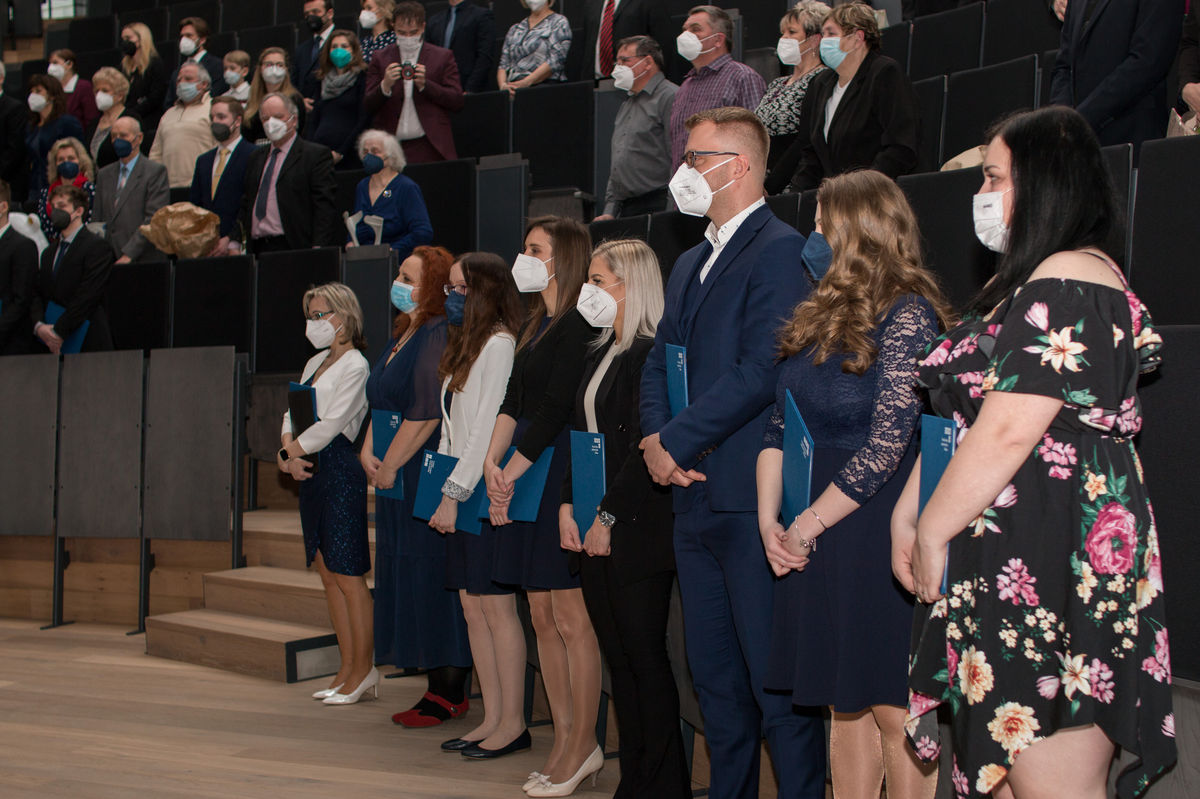 Kromě 19 bakalářů si diplom převzala také novopečená magistra – absolventka oboru Kvalita a bezpečná práce ve zdravotnictví. Absolventka Romana Fialová si kromě bakalářského diplomu odnesla i ocenění za 2. místo v soutěži o nejlepší bakalářskou práci oboru Finance a řízení za závěrečnou práci s názvem Nájem majetku fyzických osob v ČR v daňových souvislostech.