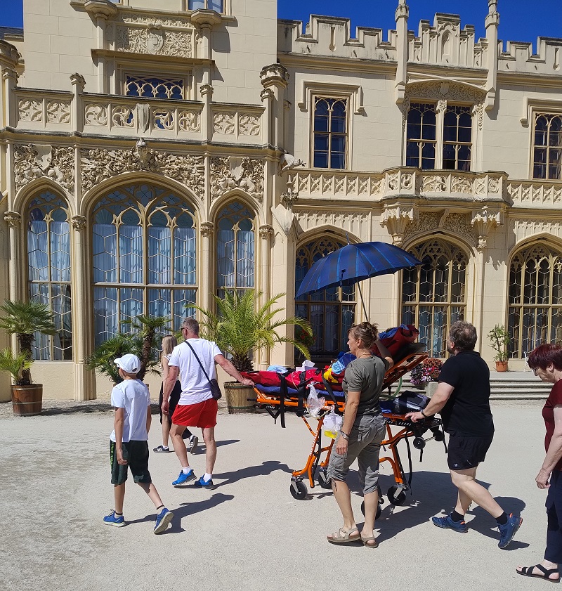 Při prohlídce lednického zámku, parku a skleníků doprovázela výpravu z novoměstské nemocnice předem domluvená průvodkyně. „Řekla nám, kde máme zaparkovat sanitku, připravila nám nájezdy pro lehátko. Postarala se o nás dokonale. Prošli jsme zámecké reprezentační sály, taneční sál i knihovnu. Měli jsme takovou soukromou prohlídku i s úžasnou hudební produkcí. Pak nás paní průvodkyně pustila do skleníku, který jsme si pak sami projeli. Natálka si mohla prohlédnout každou kytičku, a to jak ve skleníku, tak potom i v zahradách,“ popisuje návštěvu Lednice Marie Kudiovská.