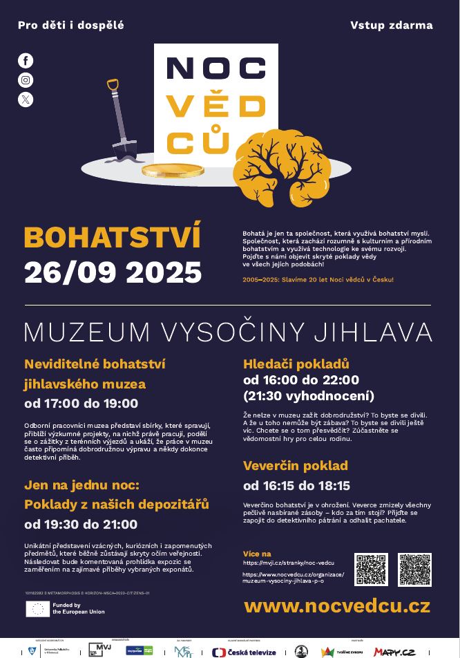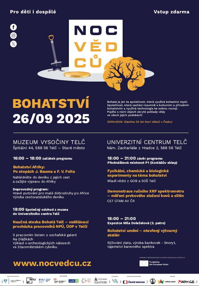 V letošním roce se tedy koná jubilejní dvacátá Noc vědců, veřejně přístupná akce, jejímž posláním je popularizace vědy a techniky. Připojuje se také jihlavské muzeum společně se svými pobočkami v Telči a v Třešti.