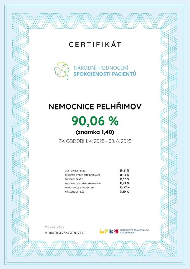 Pacienti jsou s ambulantní péčí v Nemocnici Pelhřimov spokojeni. Potvrzují to výsledky Národního hodnocení spokojenosti ambulantních pacientů Ministerstva zdravotnictví ČR za druhé čtvrtletí letošního roku.
