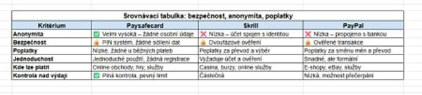 Z tabulky je zřejmé, že pokud je pro vás nejdůležitější anonymita a ochrana soukromí, vítězem je Paysafecard. Skrill a PayPal nabízejí více funkcí, ale zároveň vyžadují sdílení osobních údajů, což snižuje úroveň soukromí.