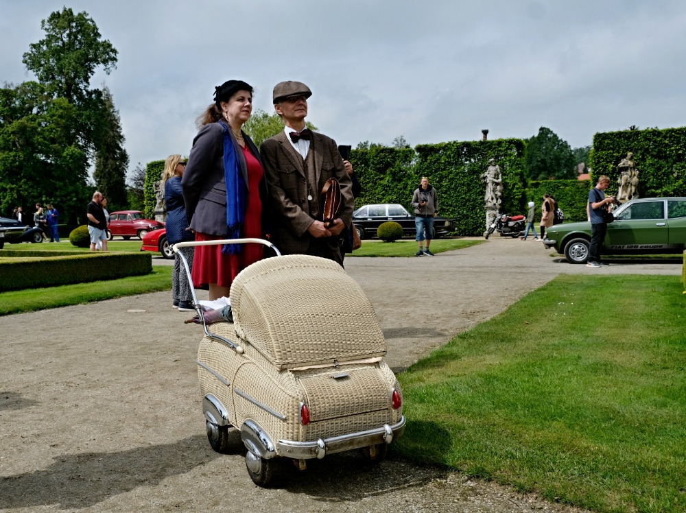 Vozidla byla rozdělena do dvou kategorií, první do roku výroby 1945 a druhá v letech výroby 1946–1989. Do zámeckého parku se sjelo velké množství plechových naleštěných krasavců české i zahraniční výroby. Velmi zajímavým kouskem byl motocykl Laurin & Klement. Návštěvníci výstavy měli možnost zhlédnout také výstavu dobových kočárků i s miminky, která byla takřka k nerozeznání od jejich živých protějšků. Po parkových cestách se procházely modelky, předvádějící secesní cestovní šaty a klobouky. Doprovodným programem byla v prostorách zámku výstava Hračky z půdy.