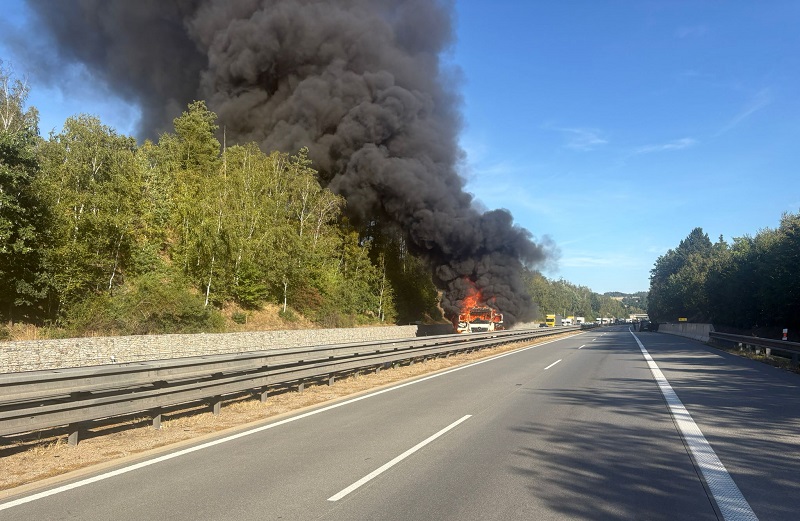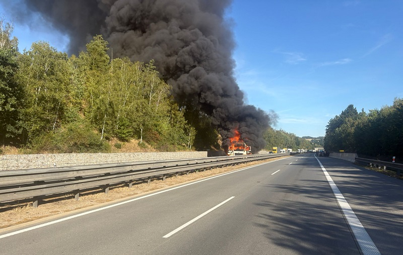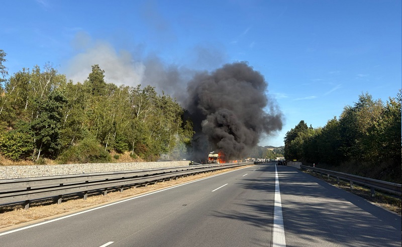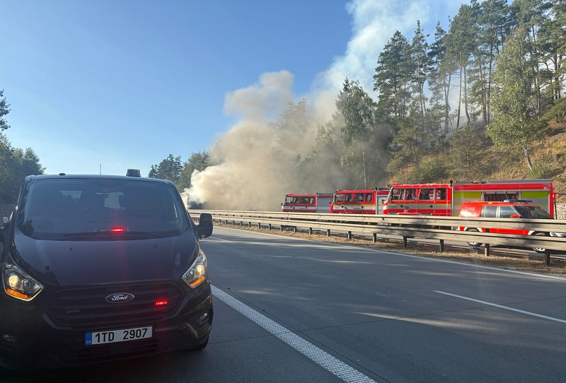 Policisté z Moravskoslezského kraje pomáhali při požáru na dálnici D1 na Vysočině