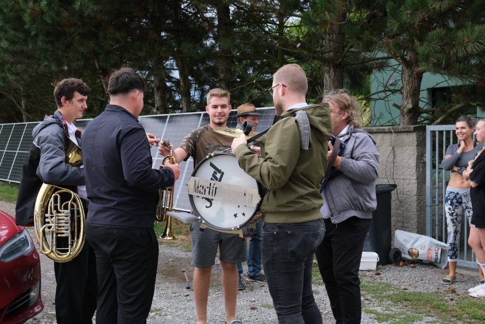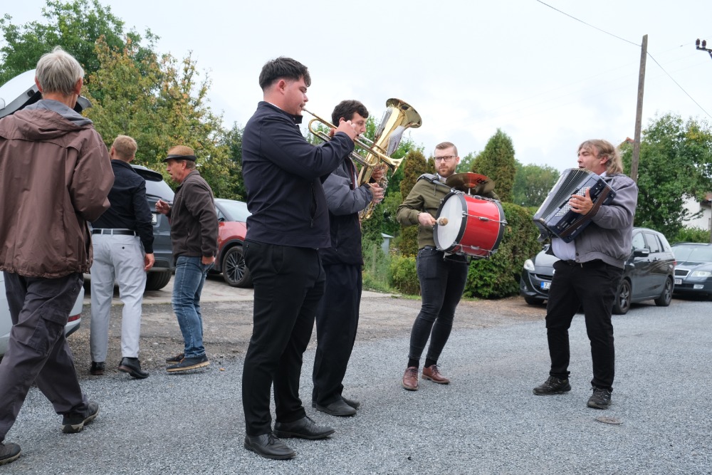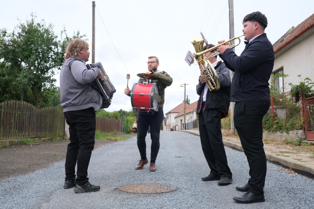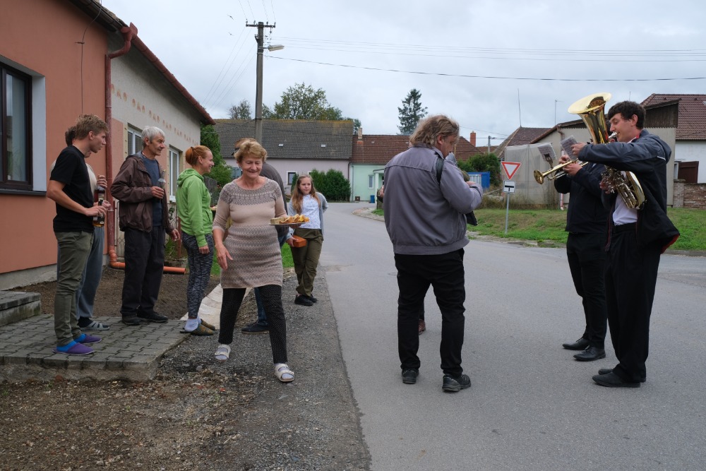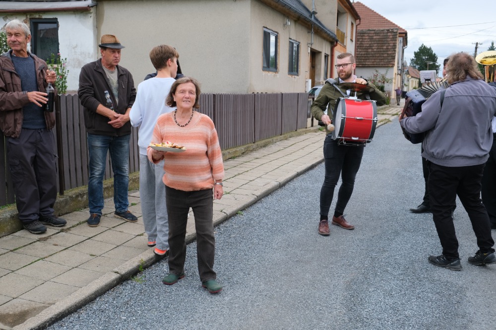 V neděli se muzikanti vydali průvodem obcí, nakonec se všichni sešli u chaloupky, kde pokračovalo hraní, sousedské povídání a občerstvení, které připravili místní, domácí koláče, chlebíčky.