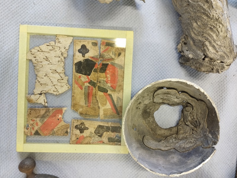 Restaurování odhalilo mnohá tajemství, mezi nimiž je nejzajímavější nález torza papírového smotku obsahujícího vzkaz budoucím generacím. Dopis byl napsán a vložen do sošky sv. Václava později, snad v 18. nebo na počátku 19. století. Jedná se o ručně psaný text, z něhož se dochovalo pouze pár slov v němčině a latině. Druhým zajímavým nálezem jsou dvě barokní mariášové karty vsunuté do koulí pod orlími drápy na nohou křtitelnice. Přesto, že se jedná o nádherné kolorované dřevoryty, použity byly pouze jako technické zajištění závady nohou křtitelnice, zřejmě jako nejbližší věc, kterou měl tehdy řemeslník po ruce.