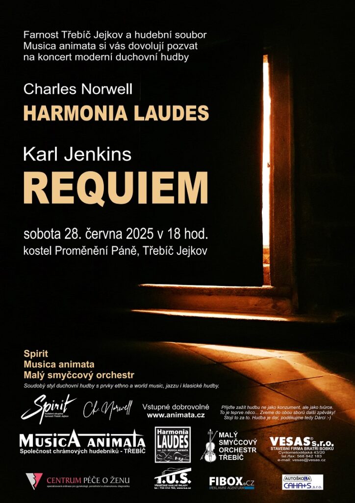 Hudební soubor Musica animata a Malý smyčcový orchestr Třebíč pořádají v sobotu 28. června v kostele Proměnění Páně v Třebíči-Jejkově koncert nazvaný Harmonia Laudes – K. Jenkins Requiem.