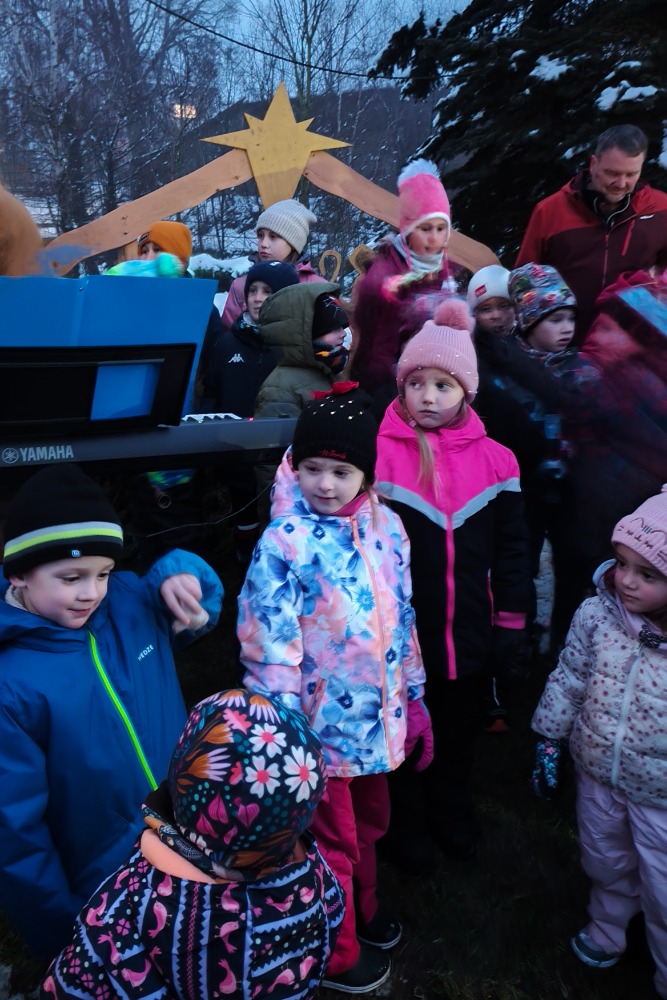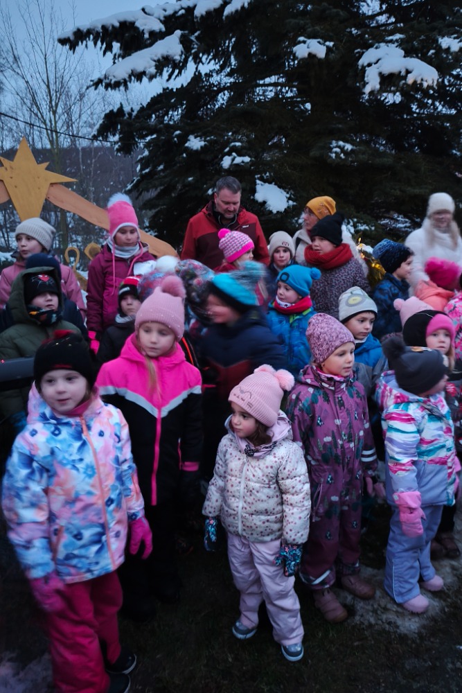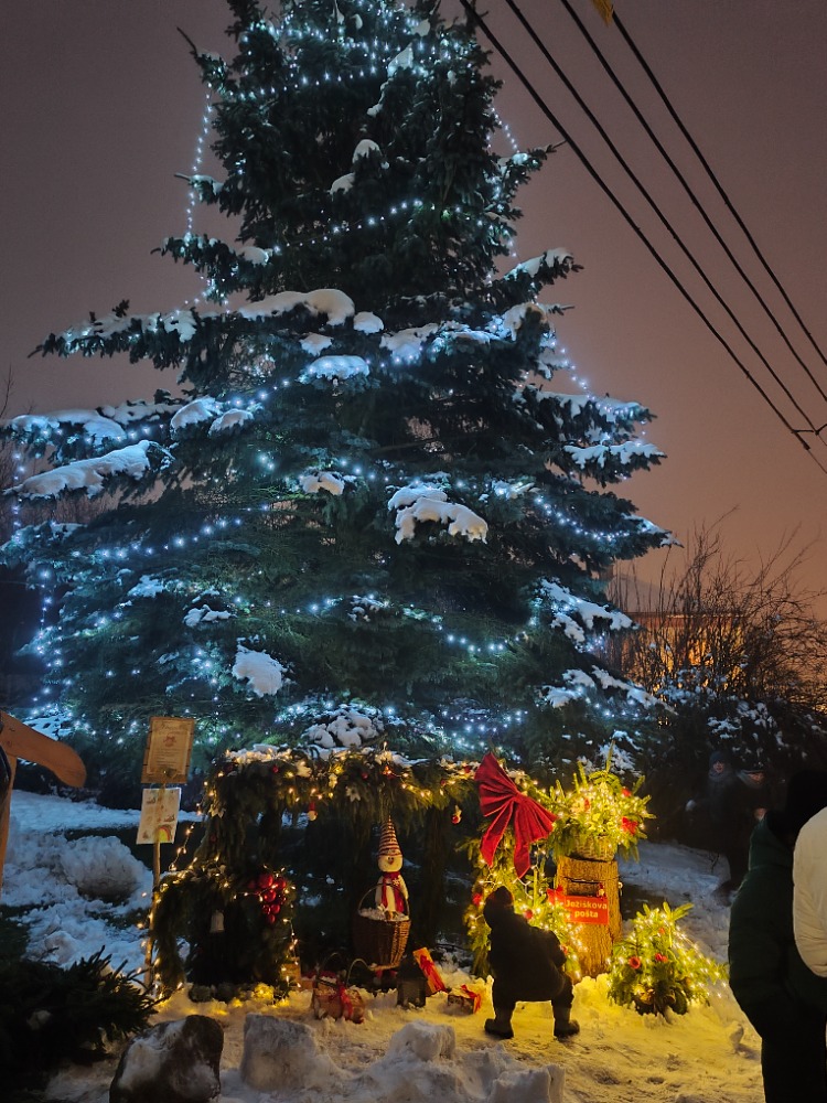 Starosta obce Dušan Svoboda pronesl k občanům krátké přání do nového roku 2026. Po zazpívání koled a vánočních písní se strom slavnostně rozsvítil. Pod zasněženým vánočním stromem byl už tradičně vyřezávaný betlém a opět zde byla umístěna schránka na dopisy Ježíškovi. Sváteční atmosférou zavoněl svařák, dětský čaj a cukroví, které pro přítomné připravili zastupitelé.