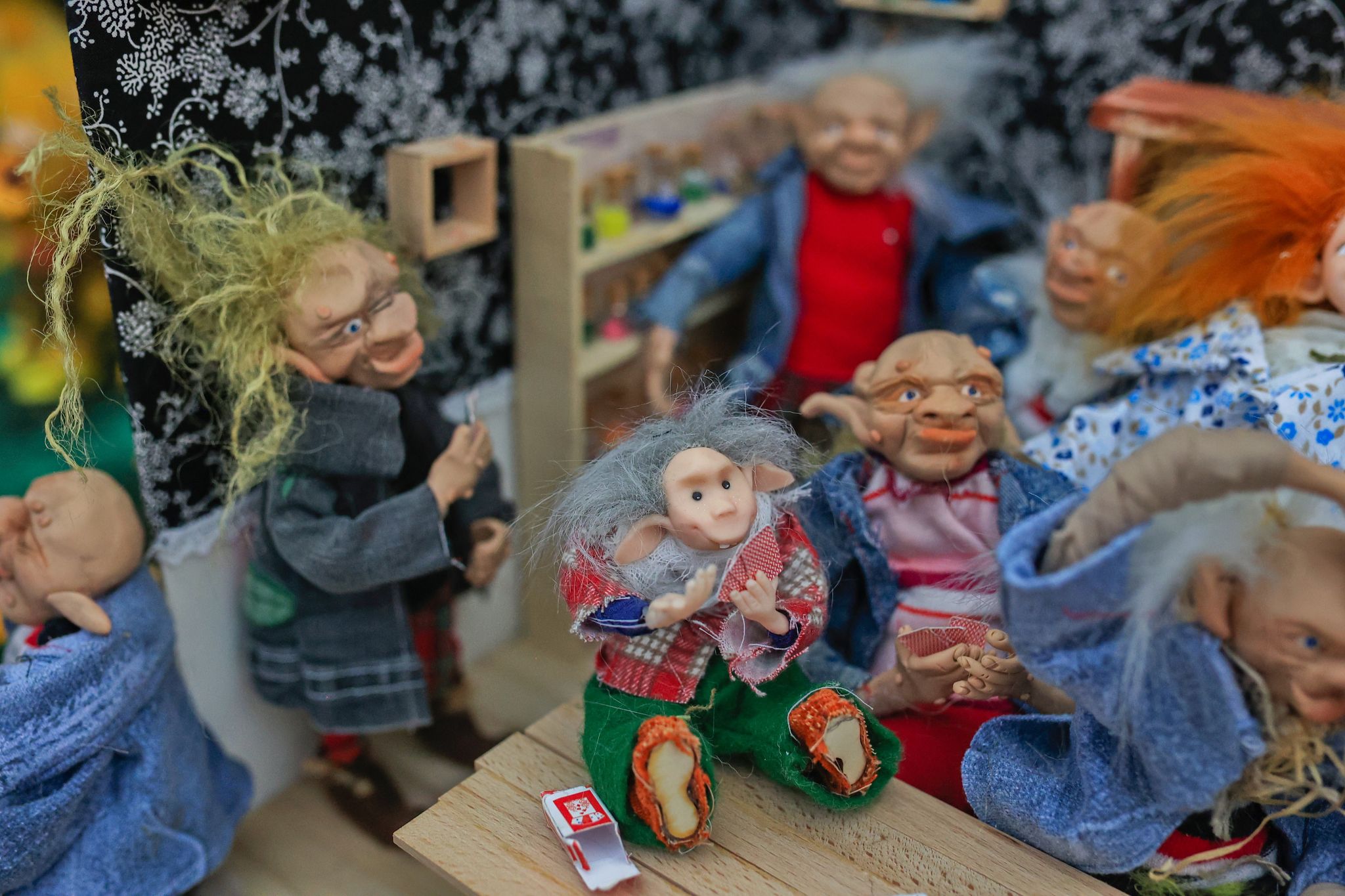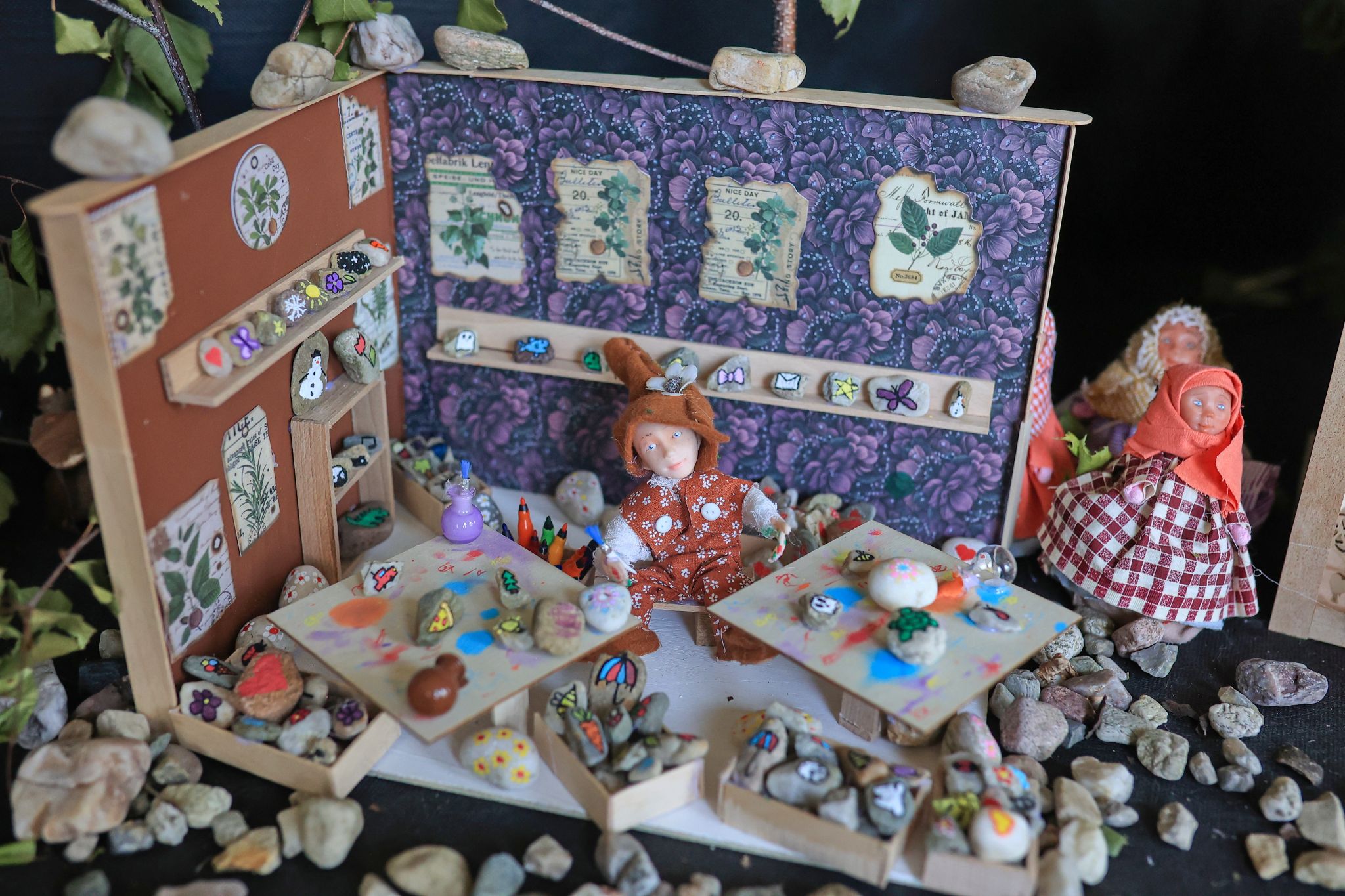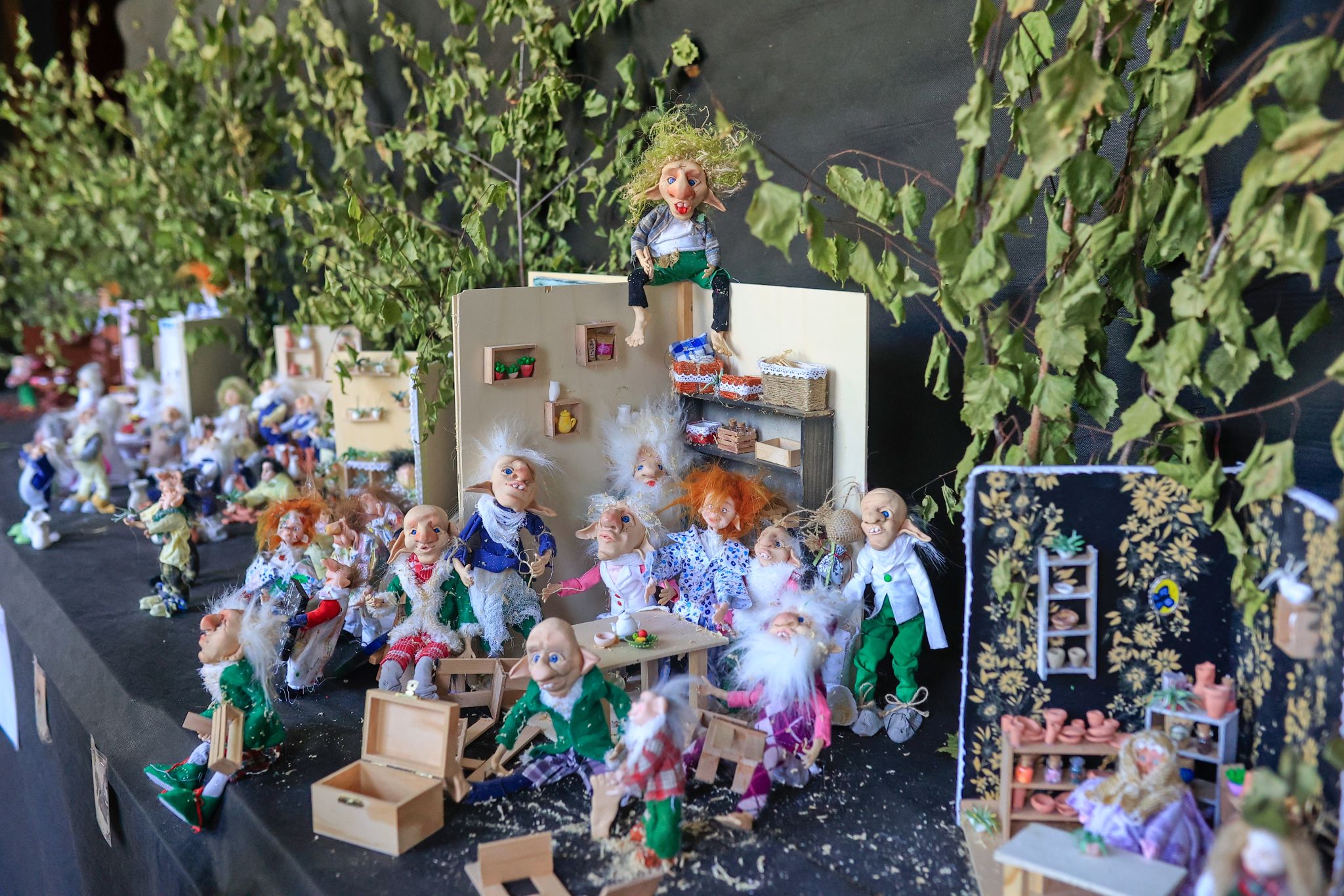 Z pár drátků a alobalu vypracovává sama autorka skřítkovi tělíčko, poté doplní hlavičku, neposlední řadě je nutné ušít jejich miniaturní šatičky. Každý skřítek a víla na výstavě je tak jedinečný originál.