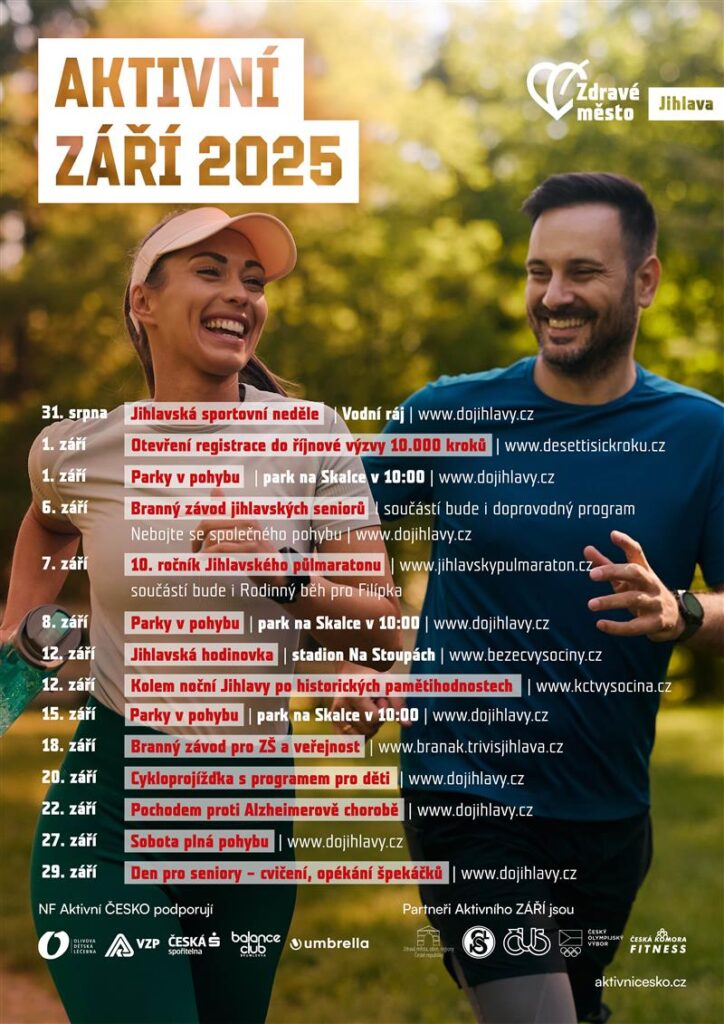 Sportovní neděle navíc v Jihlavě odstartuje Aktivní září 2025, v rámci kterého se mohou návštěvníci těšit například na Branný závod jihlavských seniorů, na desátý ročník Jihlavského půlmaratonu, na tradiční akci Klubu českých turistů Kolem noční Jihlavy po historických pamětihodnostech nebo na Sobotu plnou pohybu, kam je možné se stále přihlašovat. Organizátorem akce je Zdravé město Jihlava.