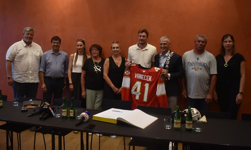 Brankář Vítek Vaněček, který pomohl hokejovému týmu Florida Panthers k zisku Stanley Cupu v kanadsko-americké NHL přivezl ve středu 13. srpna slavnou trofej do svého rodiště. Čekalo na něho nejen zaplnění Havlíčkovo náměstí, ale také vedení havlíčkobrodské radnice.