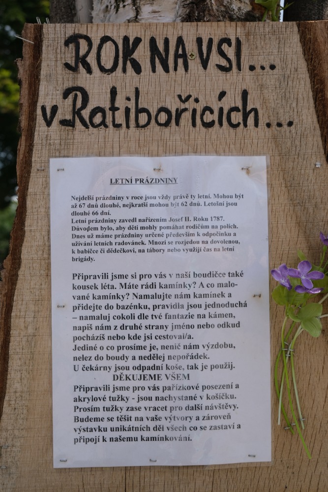 Při nedělním obcházení chasy obcí s dechovou hudbou Horanka bylo dost teplo a účastníci průvodu rádi přijali chlazené občerstvení od místních občanů, kteří je netrpělivě vyhlíželi u svých obydlí a s chutí si poslechli písničky, které jim hudebníci na jejich přání zahráli. Muzikanti hráli až se jim od nástrojů kouřilo a po celých Ratibořicích bylo veselo. Zmínit je třeba stylově vytvořenou letní upoutávku vedle ratibořické autobusové zastávky, kterou vytvořili a vyzdobily ratibořické ženy.