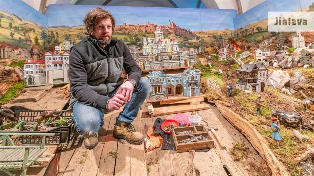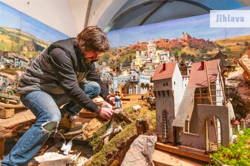 Pavel Procházka právě v kostele u Matky Boží v Jihlavě dokončuje letošní betlém.