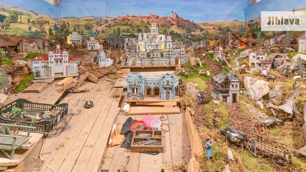 Pohádkový ráz zvyšuje ještě množství nejrůznějších hradů, zámků, zřícenin i chaloupek, které tvořila bohatá fantazie jihlavských stavitelů i umělců (především Gottfied Miksche, Hilarius Schindelka, Gustav Pfeifer, Jindřich Jindra, Jan a Gustav Pokorných, Karel Fischer a dalších). Mimo množství malých modelů má minoritský Betlém asi třicet velkých zámků a hradů, z nichž největší mají rozlohu 2 x 1 m. Každý má množství věžiček a ornamentů, ve kterých jsou najednou všechny slohy. Renesanční ozdoby jsou sloučeny s gotickými oblouky, čínskými střechami a orientální nádherou. Mnohé modely jsou dělány podle skutečnosti. Modely domečků z březové kůry byly pořízeny od tehdejšího faráře P. Aloise Kadlece (1964–1972).