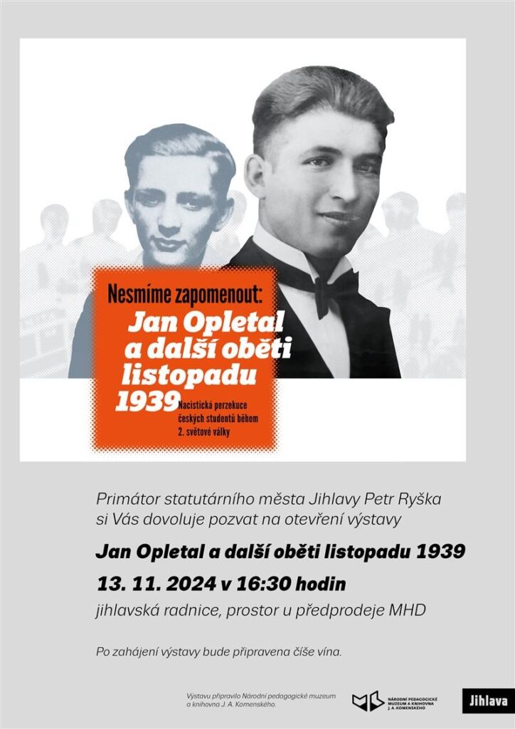 Na jihlavské radnici v hale MHD bude od 13. listopadu do 20. prosince probíhat také výstava k 85. výročí událostí 17. listopadu 1939, které vedly k prohlášení tohoto dne Mezinárodním dnem studentstva.