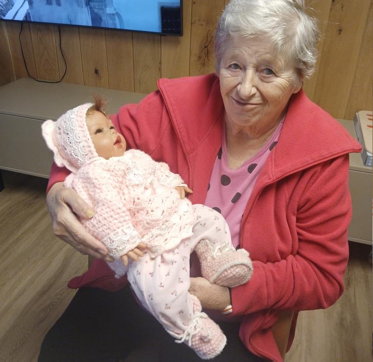 „Díky panenkám můžeme s klienty vzpomínat na jejich vlastní děti, povídat si o tom, jaké to bylo, když se narodily. Vzpomínky tak sahají až do hluboké minulosti,“ popisuje aktivizační pracovnice Jana Dlouhá.