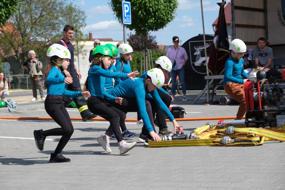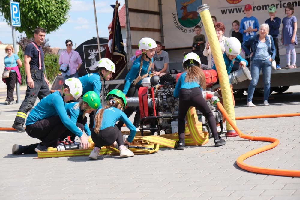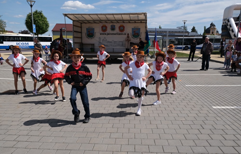 Poté děti z jaroměřické základní školy předvedli své nacvičené tance, za které sklidili velký potlesk. Profesionální hasiči z Moravských Budějovic, předvedli divákům vyproštění zraněného řidiče z havarovaného osobního vozu. Mladí hasiči ukázali jací jsou rychlí při požárním útoku. Závěrečnou ukázkou sobotního odpoledne byla ukázka slaňování z vysokozdvižné plošiny, se záchranou osoby. Po celou dobu programu u jaroměřické hasičské zbrojnice, bylo k dispozici pro zájemce občerstvení.