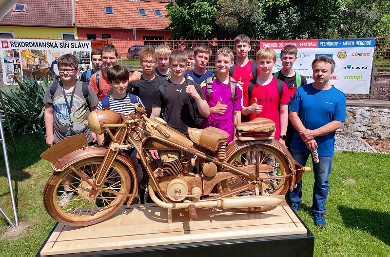 V Pelhřimově vrcholí Festival rekordů, představí i motocykl ČZ 250 Sport vyřezaný ze 40 druhů dřeva