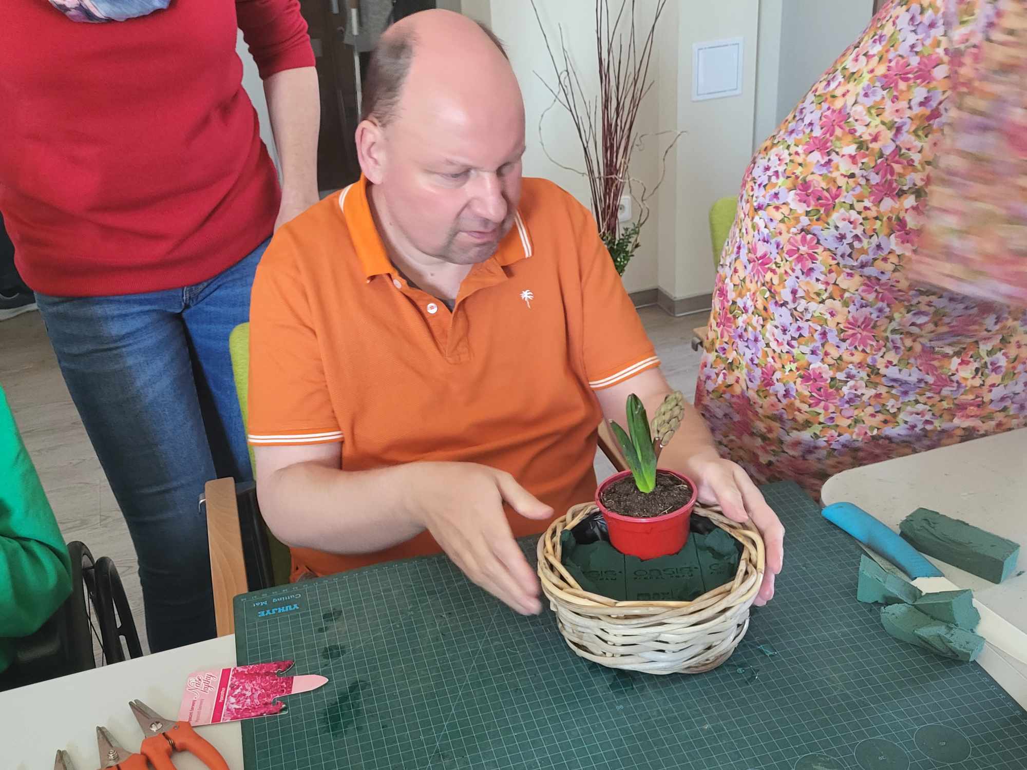 „V druhé části programu si zájemci vytvořili jarní dekoraci pod lektorským vedením Anny Rásochové z Flowerboxy Terezianna. Spousta z nich odcházela s obrázkem, který vznikl technikou enkaustika (malování horkým voskem), resp. originální mandalou. A další část si zkoušela nástroje, se kterými pracujeme v rámci muzikoterapie, a v závěru programu si společně i zazpívali. A někteří hosté si vyzkoušeli pohybové aktivity za budovou stacionáře, Nechybělo výborné občerstvení, a když je první jarní den, tak v nabídce nechyběl zeleninový salát, jednohubky s řeřichou, nebo avokádovou pomazánkou, a ovocné smoothie více druhů,“ uvedla Andrea Šeredová
