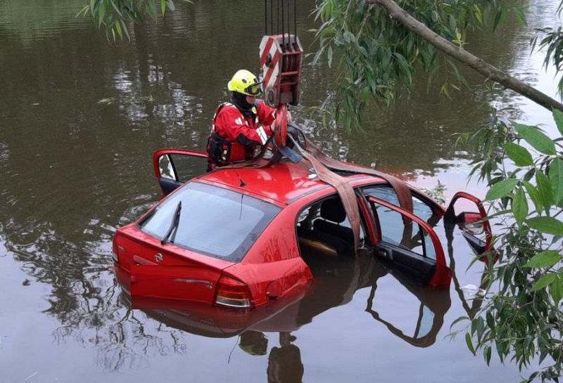 Ve Stříteži na Jihlavsku skončilo auto v rybníce