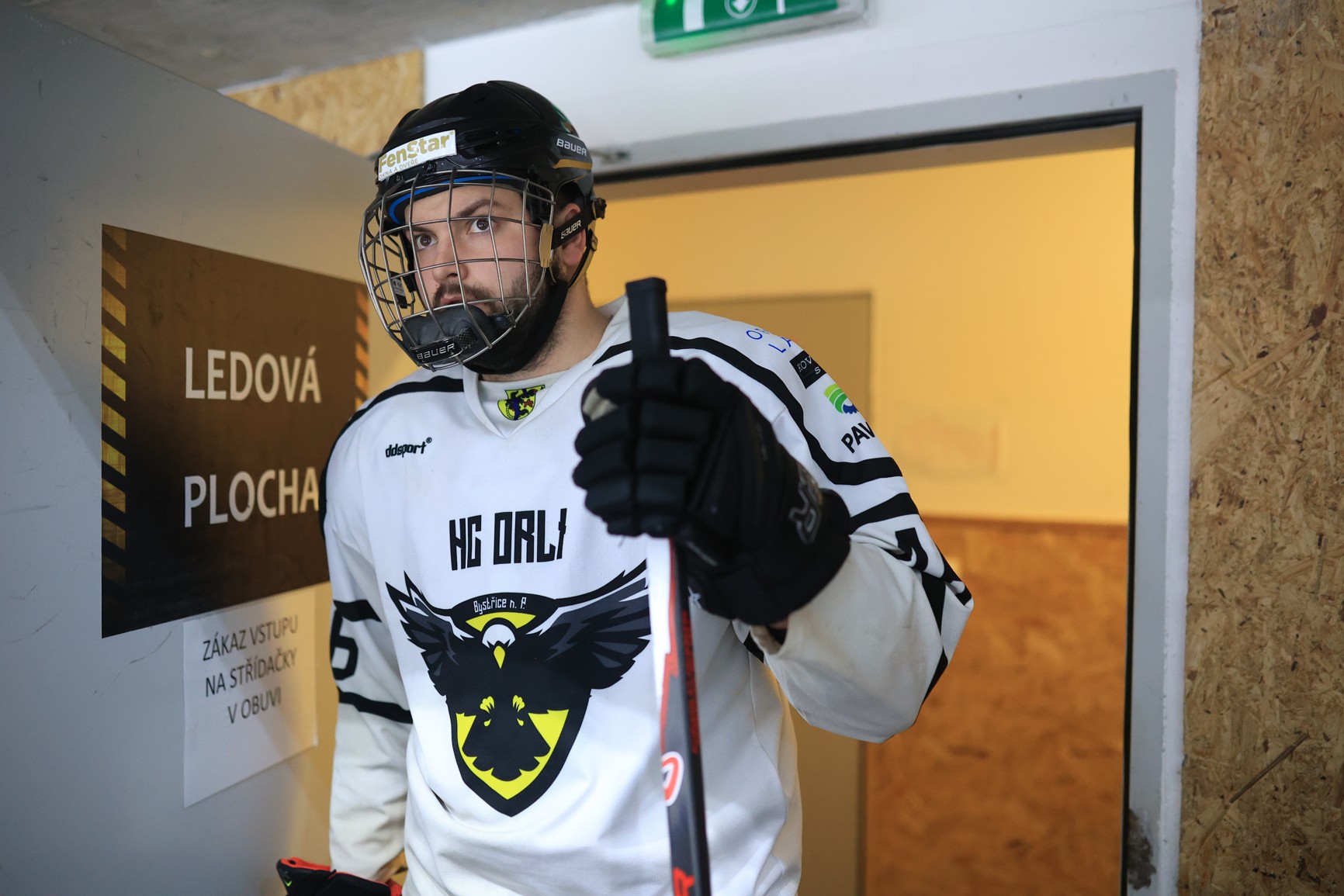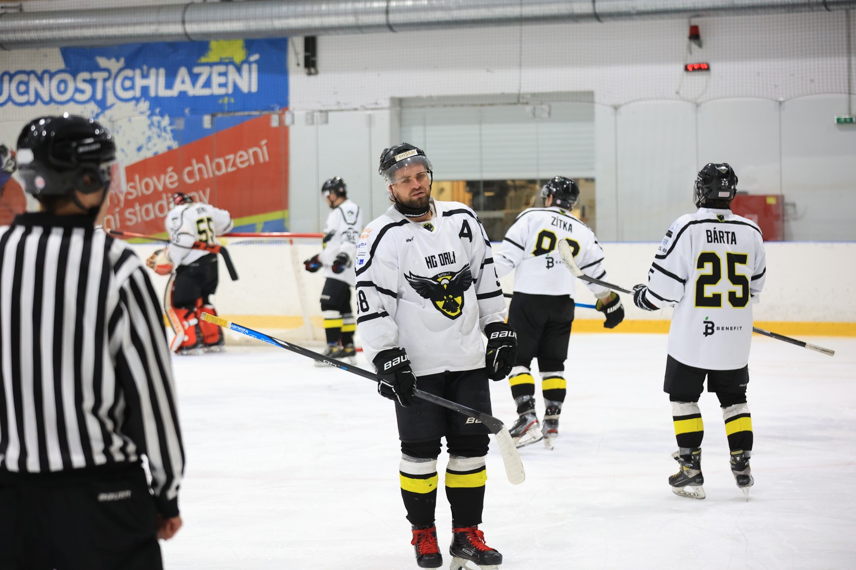 Druhý tým tabulky se ujal vedení již ve 39. vteřině, kdy skóroval Malý – 0:1. Na další góly se čekalo až do poloviny nedělního utkání, během necelých pěti minut jich diváci viděli celkem pět. V čase 30:03 proměnil trestné střílení Dupljaku – 0:2. Uplynulo pouhých 36 vteřin a hosté přidali třetí gól, trefil se Kazlepka – 0:3. Potom se dočkali Orli, v čase 32:41 snížil na rozdíl dvou gólů Jindra – 1:3. Další úsilí zhatilo vyloučení Macka (34:25), protože hosté velmi rychle (35:00) vstřelili čtvrtý gól, o který se postaral Malý – 1:4.