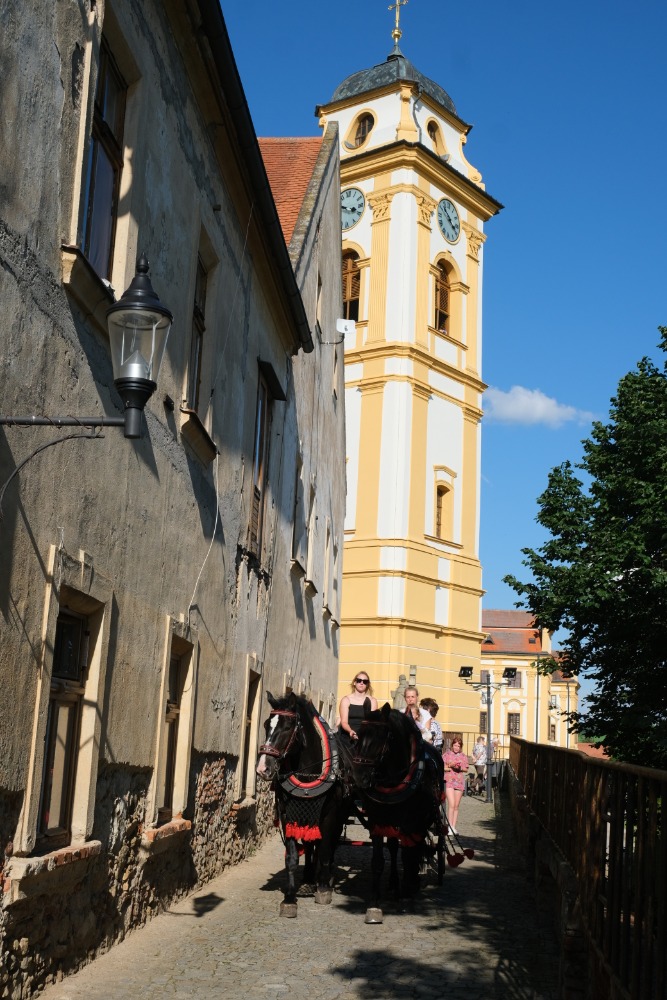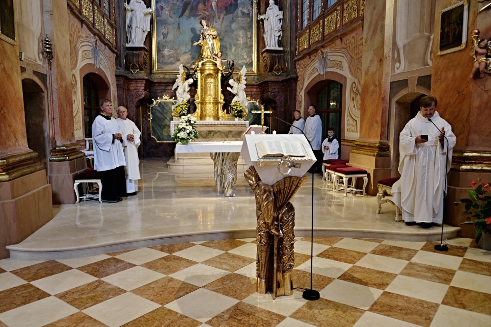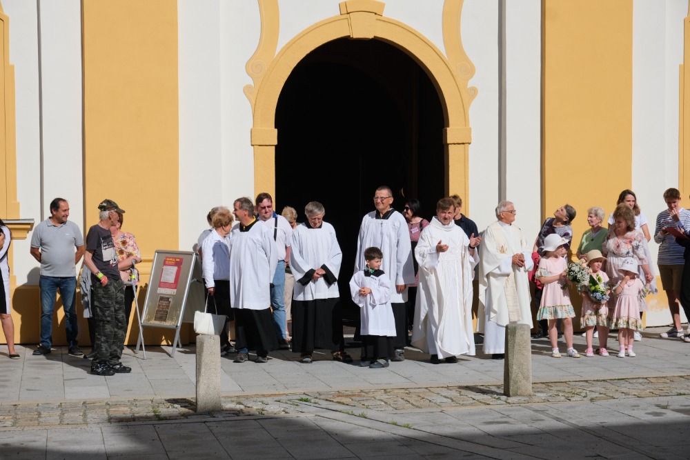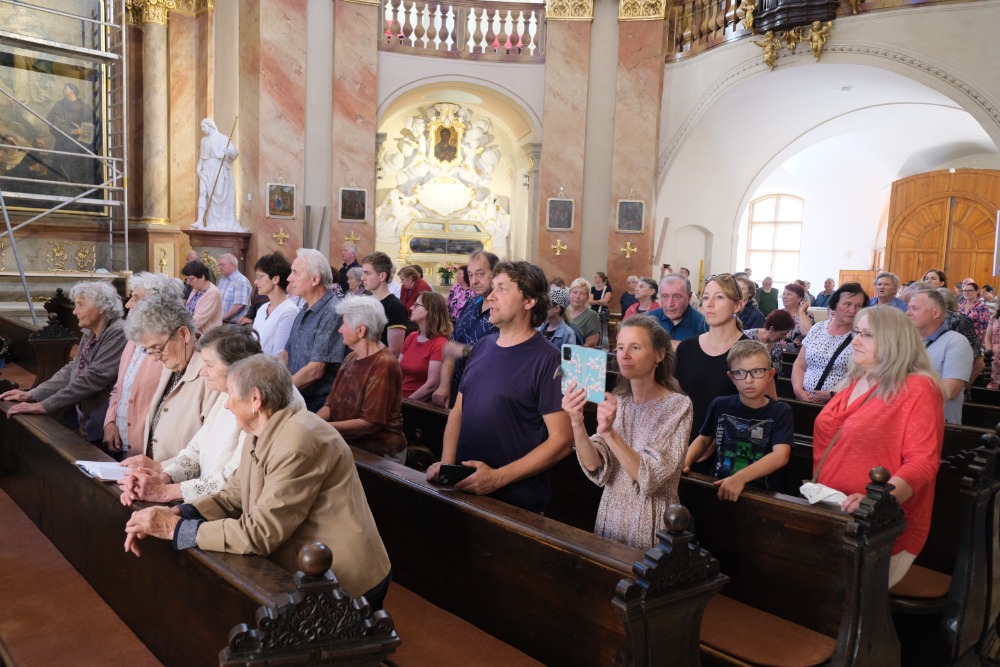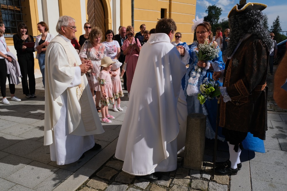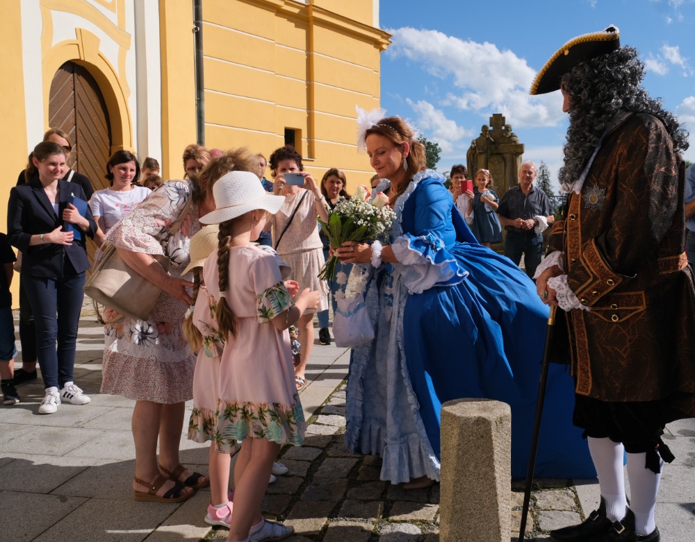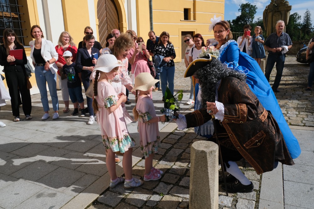 V pátek po páté hodině odpolední přijel před jaroměřický chrám svaté Markéty kočár tažený párem statných koní, ze kterého vystoupil hraběcí pár, Jan Adam z Questenberka se svojí manželkou Marií Antonií. Byli uvítaní kyticemi z rukou malých družiček a hlasitým mohutným voláním Vivat sláva. Poté byli uvedeni jaroměřickým farářem otcem Tomášem Holcnerem do chrámu na slavnostní mši. Mezi tím, než skončila mše, vozil zájemce hraběcí kočár v okolí chrámu. Otevřena byla pro veřejnost také kaple svatého Josefa, kde je v podlaze položena náhrobní deska Questenberků. K návštěvě zvaly obě věže chrámu, z nichž jižní věž poskytuje pohled na část Jaroměřic a okolí.