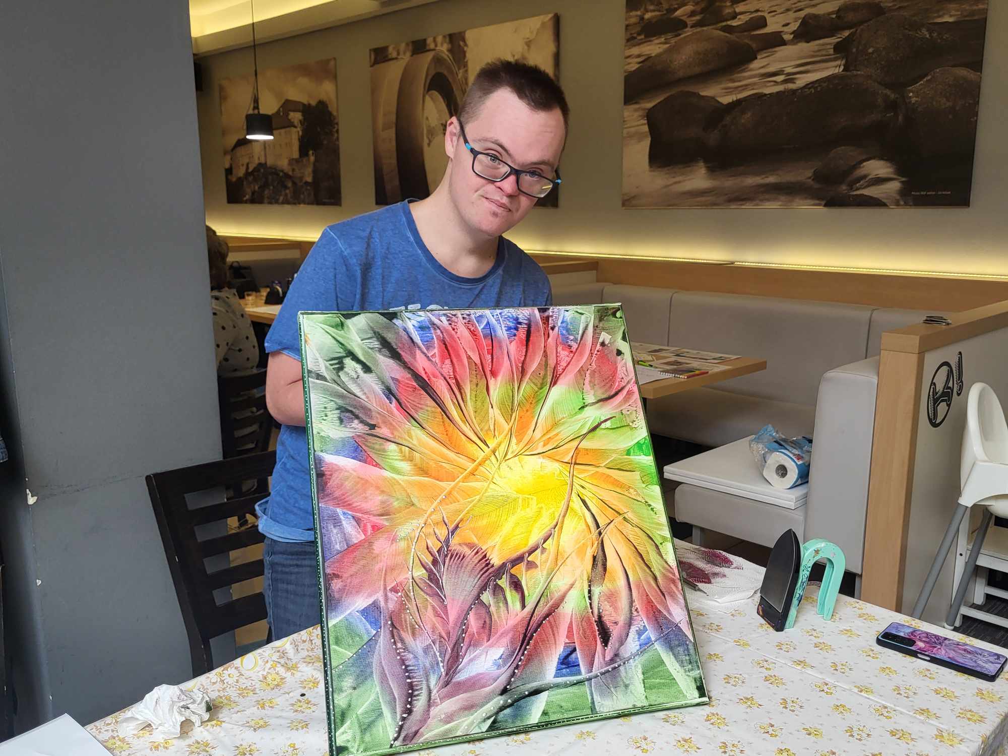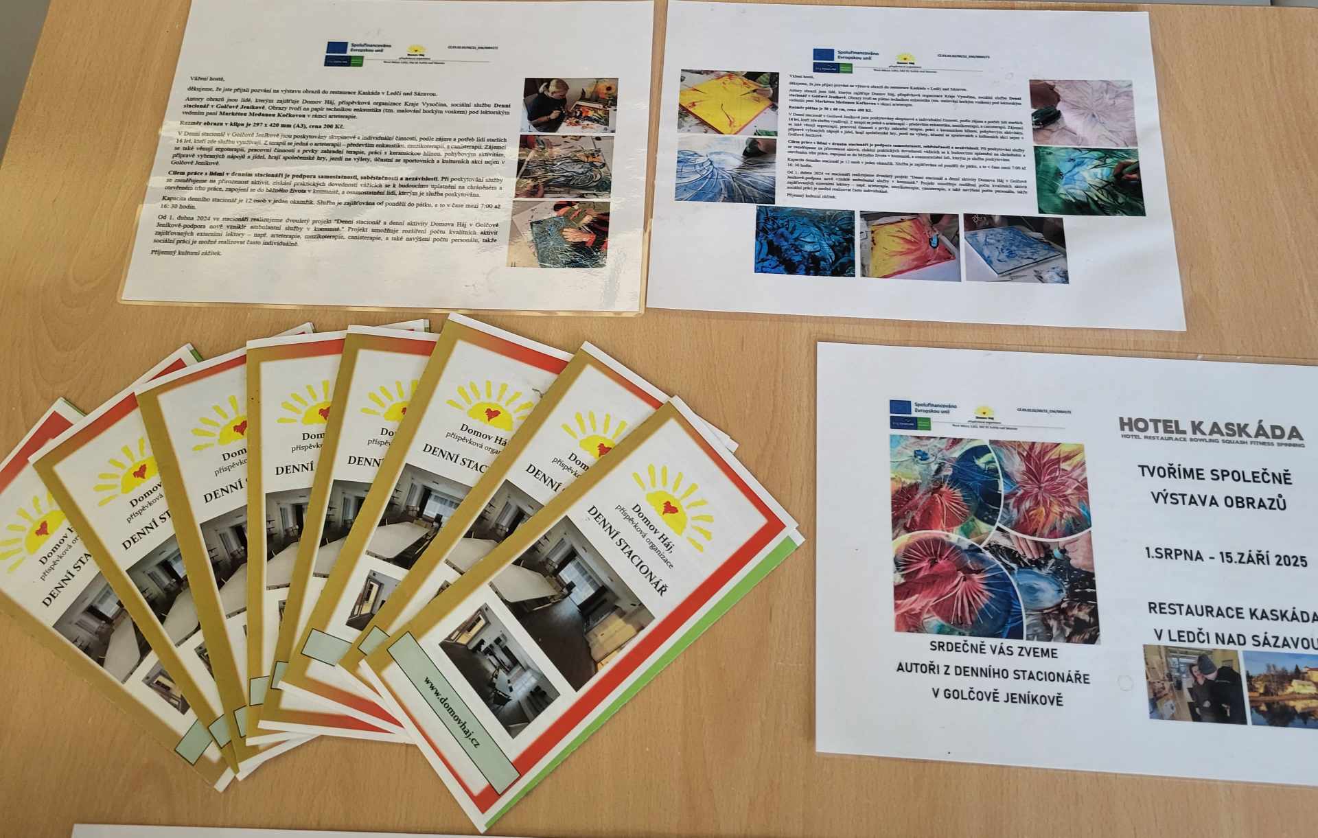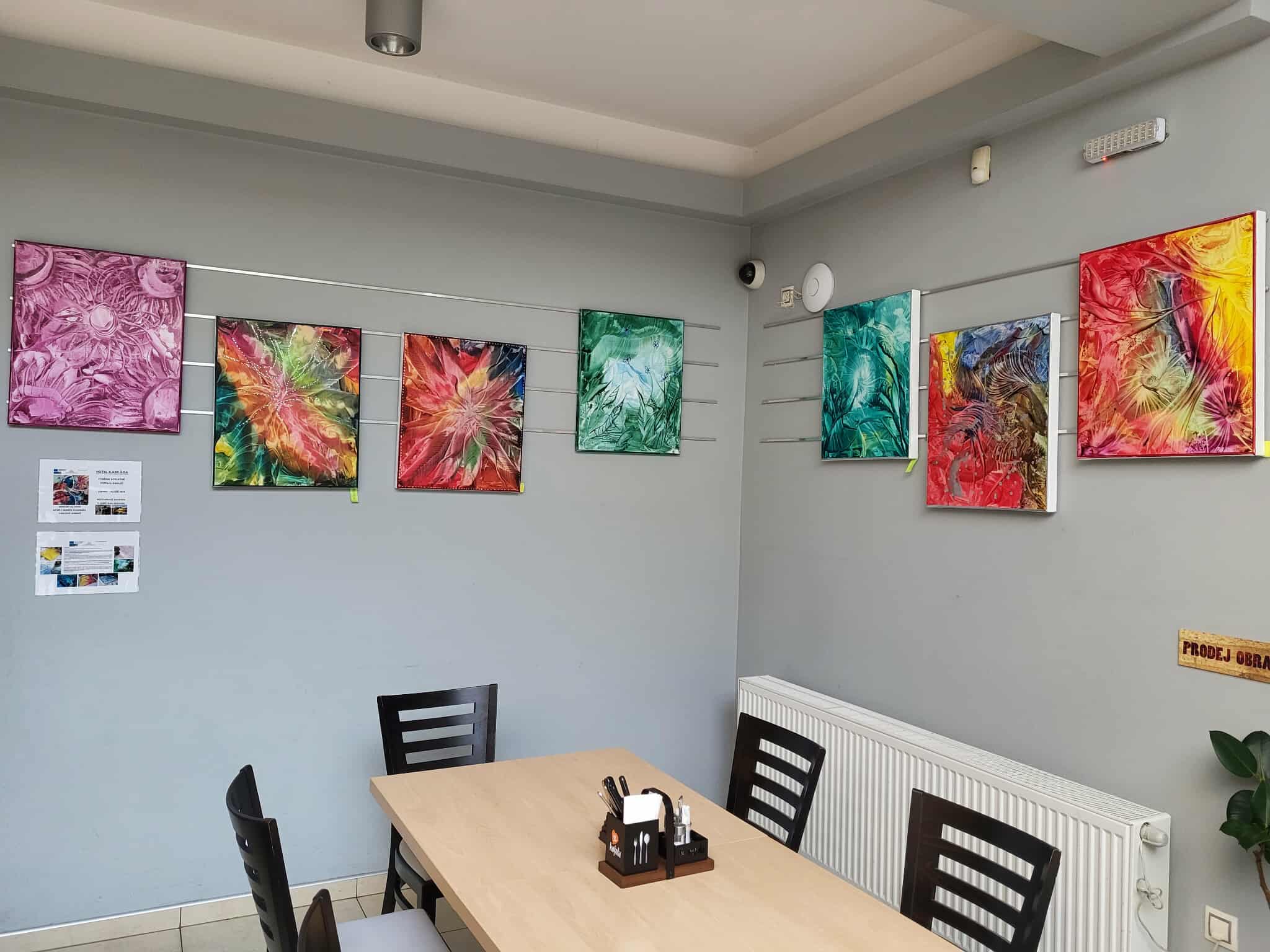 V hotelu a restauraci Kaskáda na náměstí v Ledči nad Sázavou se až do pondělí 22. září koná výstava obrazů, které tvořili zájemci v Denním stacionáři a denních aktivitách v Golčově Jeníkově v rámci arteterapie technikou enkaustika (tzn. malování horkým voskem) pod lektorským vedením Markéty Meduny-Kočkové.