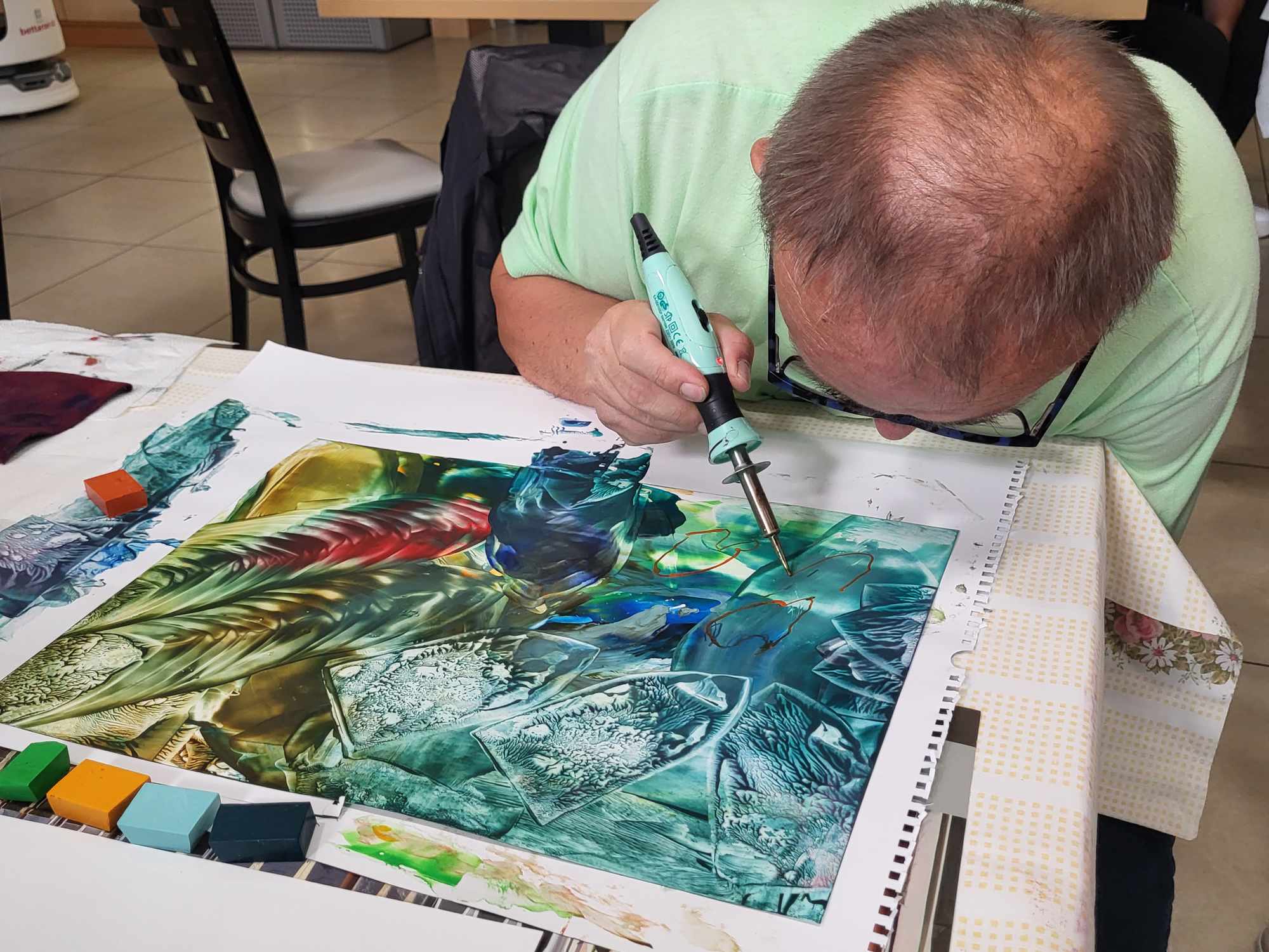 Hosté výstavy si měli možnost prohlédnout dvacet zcela nových obrazů vytvořených na papír a čtrnáct obrazů na speciálně připravené plátno – tyto obrazy na putovní výstavě ještě nebyly vystavovány. A velký zájem byl i o možnost vyzkoušet si techniku enkaustiku, kterou se obrazy malují, dozvědět se o ní více, a zároveň si ji i vyzkoušet, na výjezdní arteterapii, která se v hotelu a restauraci Kaskáda v Ledči nad Sázavou, konala v pondělí 15. září od 15.00. Zájemci se na ní setkali i s autory obrazů, a lektorkou arteterapie v Denním stacionáři a denních aktivitách v Golčově Jeníkově Markétou Medunou–Kočkovou.