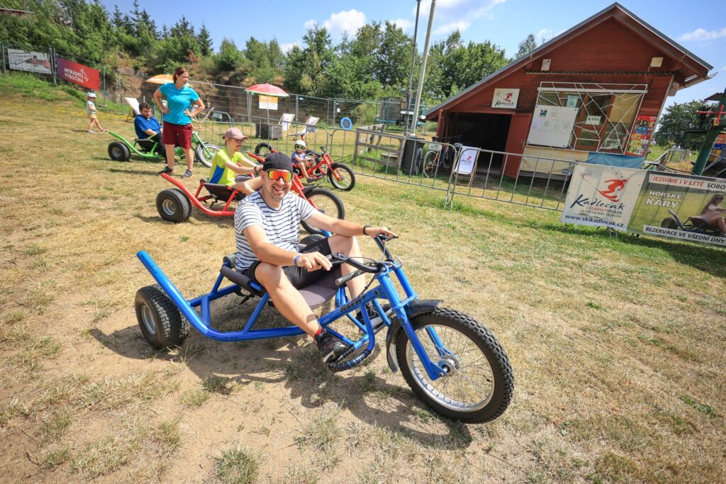 Na kopec vás vytáhne vlek a dolů už sjíždíte tak rychle jak jen vaše řidičské dovednosti dovolí. Tříkolky jsou určeny pro děti i dospělé. S menšími dětmi lze na kárách po sjezdovce jezdit ve dvou (spolu s rodičem). Povinná výbava jezdce je helma, kterou je možné na místě zapůjčit.