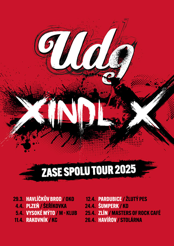 Klub Oko v Havlíčkově Brodě v sobotu 29. března přivítá kapelu UDG a Xindl X, vyrážející po dlouhých devíti letech na turné Zase spolu tour 2025.