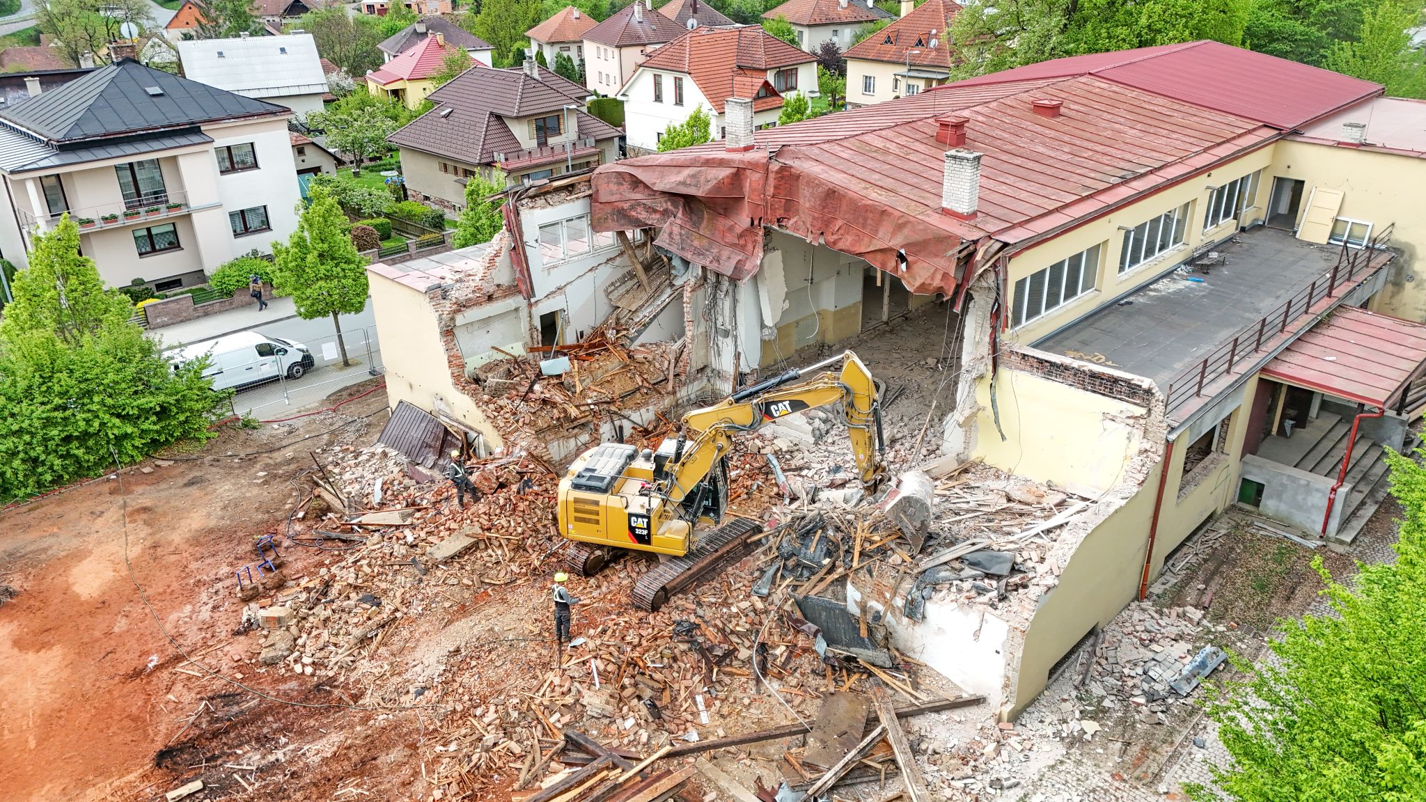 V Bystřici nad Pernštejnem pokračuje demolice staré sokolovny, kterou má starost firma Tocháček, spol. s r. o., která zároveň bude realizovat stavbu nové budovy. Celý projekt včetně demolice vyjde město na 72,3 milionu korun bez DPH.