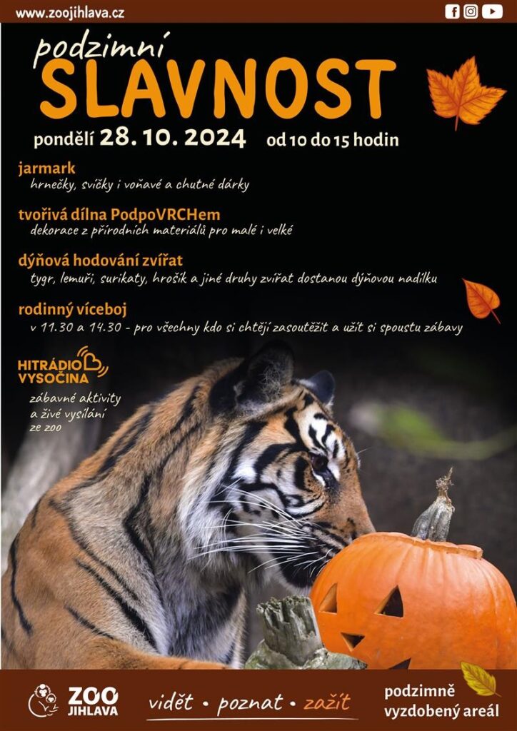 Podzimní slavnosti v jihlavské zoo nabídnou v pondělí 28. října program plný podzimní atmosféry a zábavy pro celou rodinu, mimo jiné se uskuteční také od 10.00 do 14.30 dýňové hodování pro zvířata.
